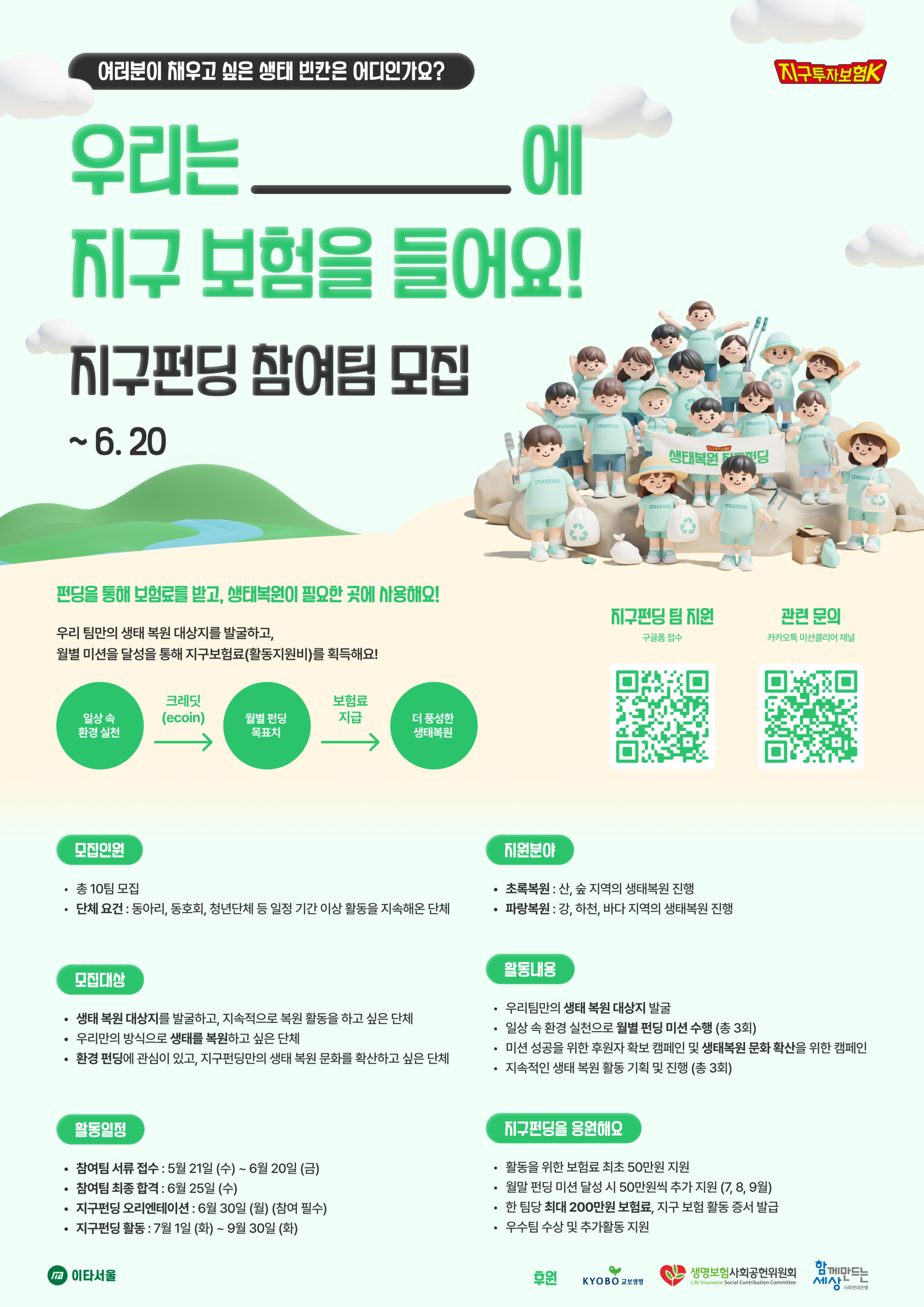 #지구펀딩 #생태복원 #환경단체모집 #지구보험 #교보생명 #생명보험사회공헌위원회 #함께만드는세상