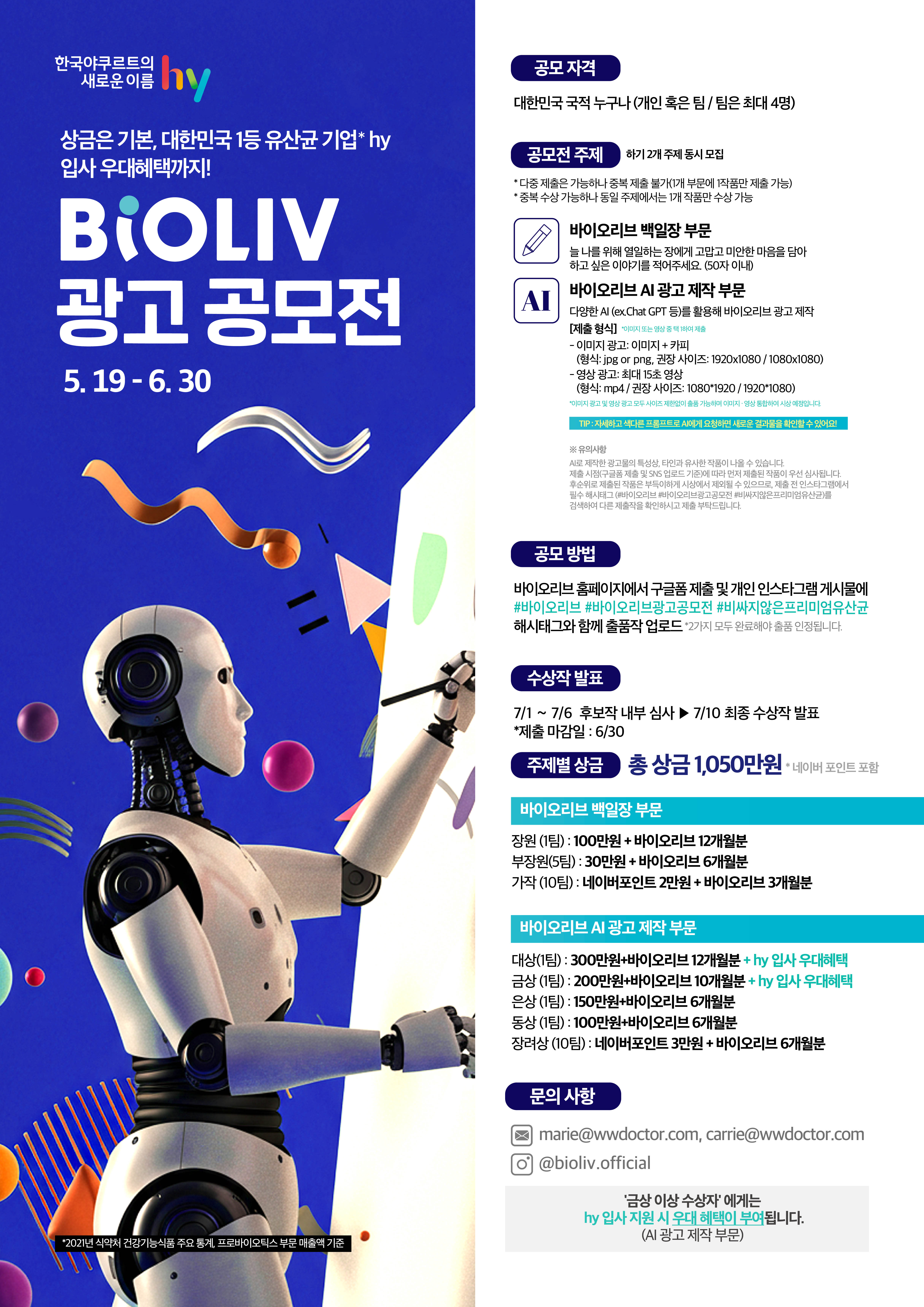 - 대상(1팀) 300만원+바이오리브 12개월분+hy 입사