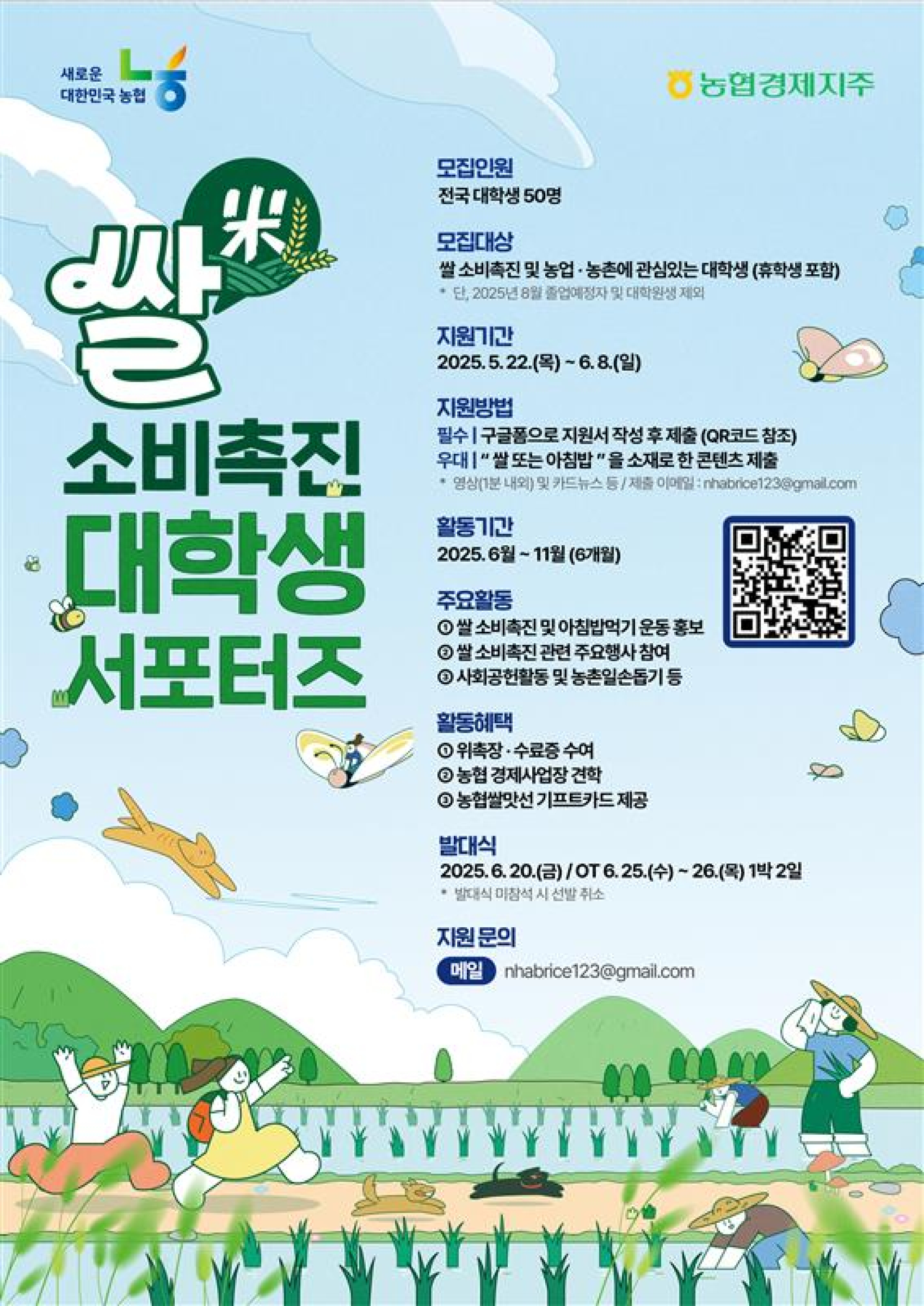 농협경제지주 쌀 소비촉진 대학생 서포터즈 모집