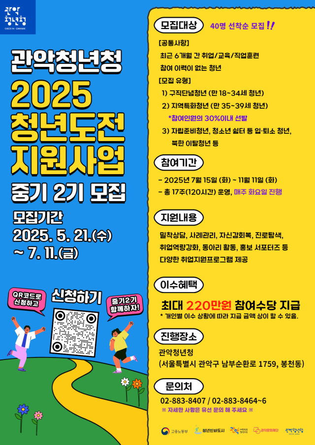 - ☏ 관악청년청 청년문화팀 02-883-8407 / 02-883-8464~6