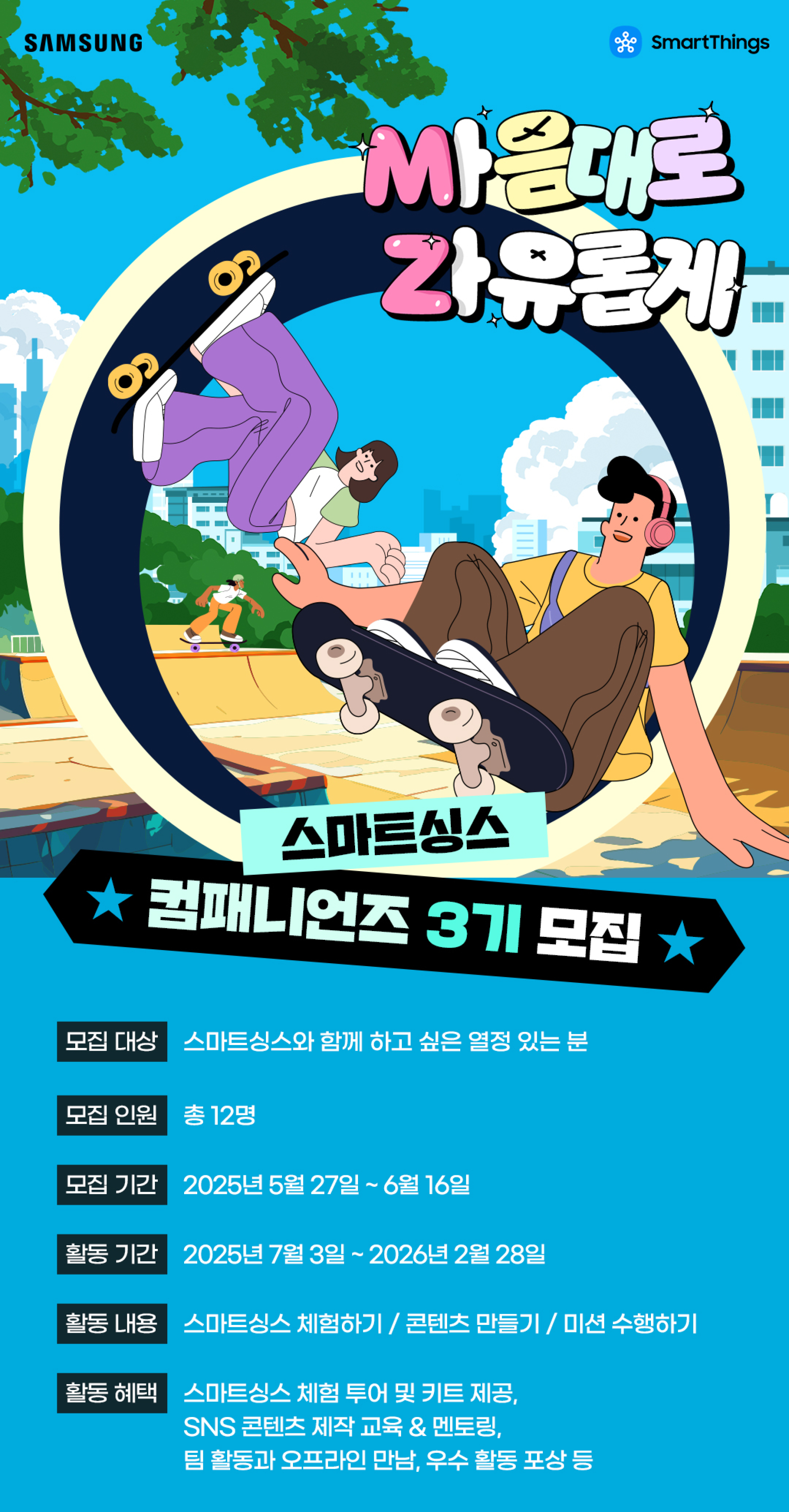 | 혜택 | 우수 활동 포상, 스마트싱스 체험 투어 및 키트 제공, SNS 콘텐츠 제작 교육&멘토링, 수료증/활동비 外 |