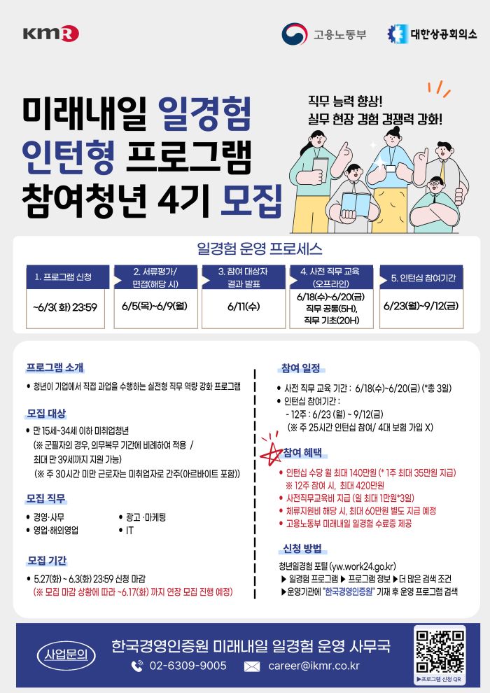2025년 미래내일 일경험 4기 체험형 인턴 모집 공고 (미래내일 일경험xKMR)