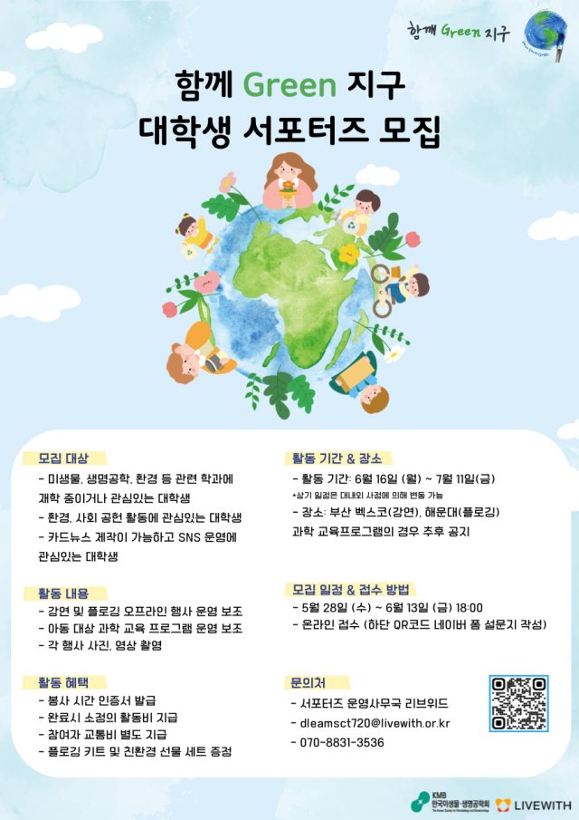 [한국미생물·생명공학회] 함께 Green 지구 대학생 서포터즈 모집