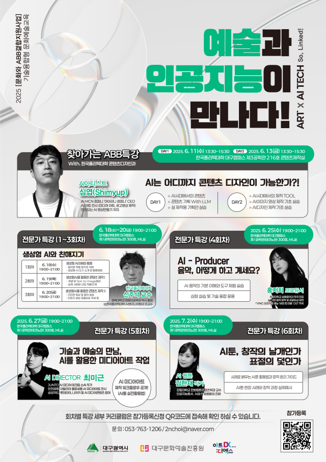 [대구문화예술진흥원] 2025년 문화와 ABB결합지원 기술융합형 문화예술교육 (ART X AI TECH)