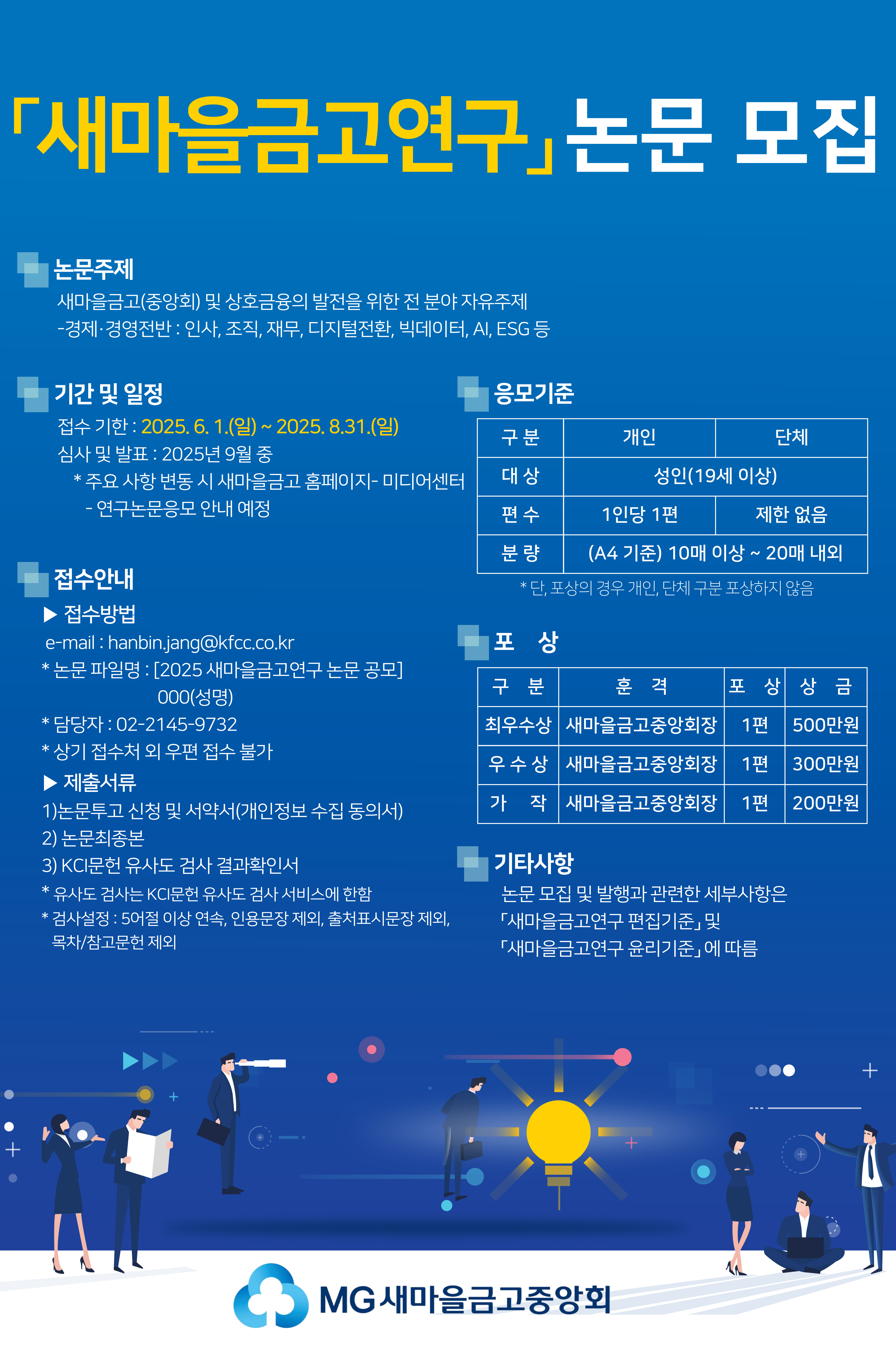 - 2025년 연말 발행될 새마을금고학술지인 '새마을금고연구'에 수록될