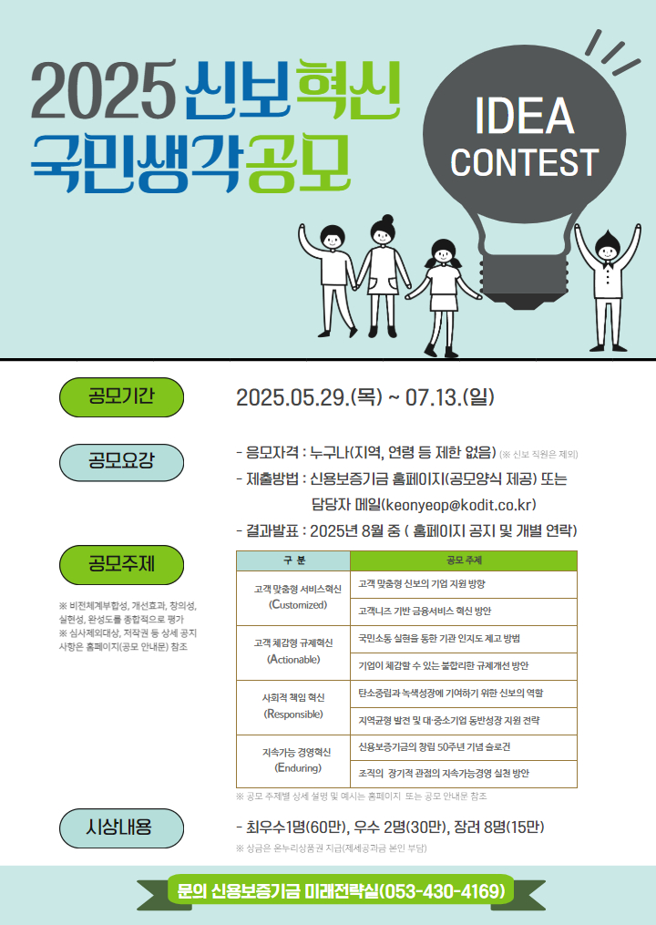 - ☏ 신용보증기금 미래전략실 담당자(053-430-4169)