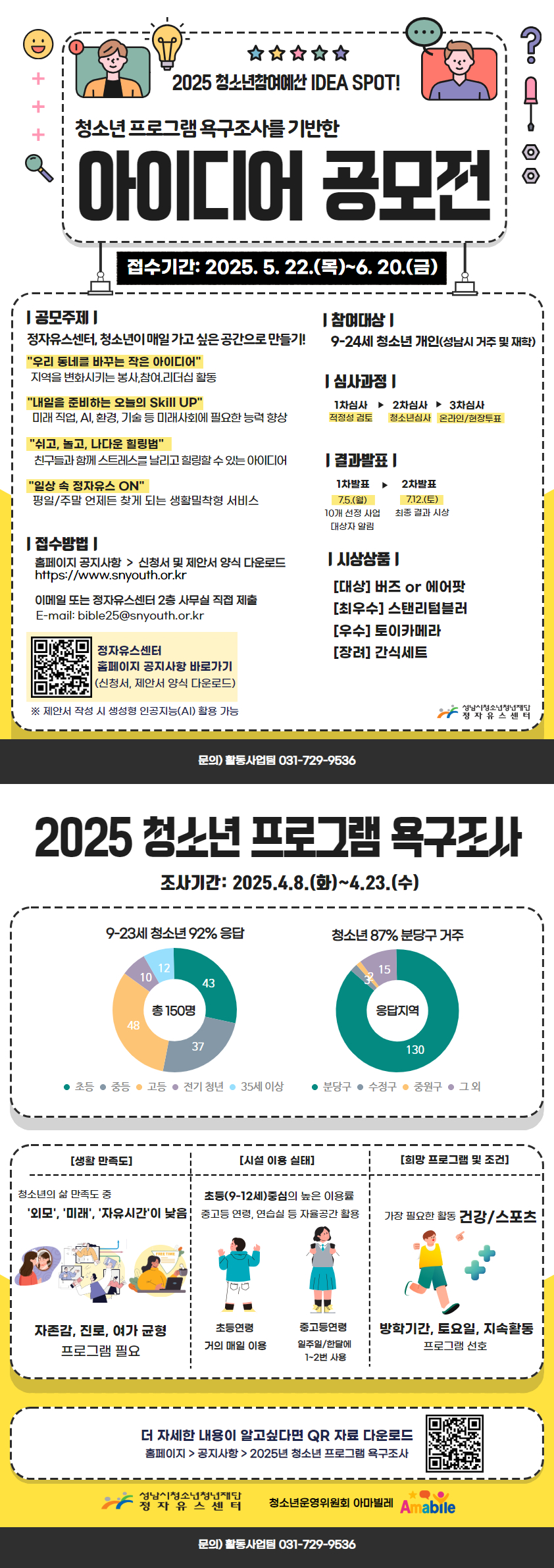 - 2025년 청소년 욕구조사를 기반으로 하여 청소년이 원하는 프로그램과 아이디어를 직접 제안할 수 있는 기회를 마련하고자
