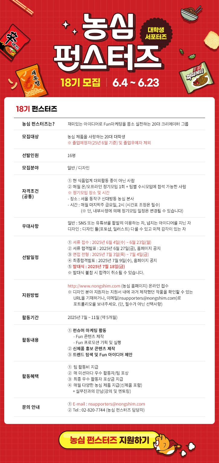 - 02-820-7744 (농심 펀스터즈 담당자)