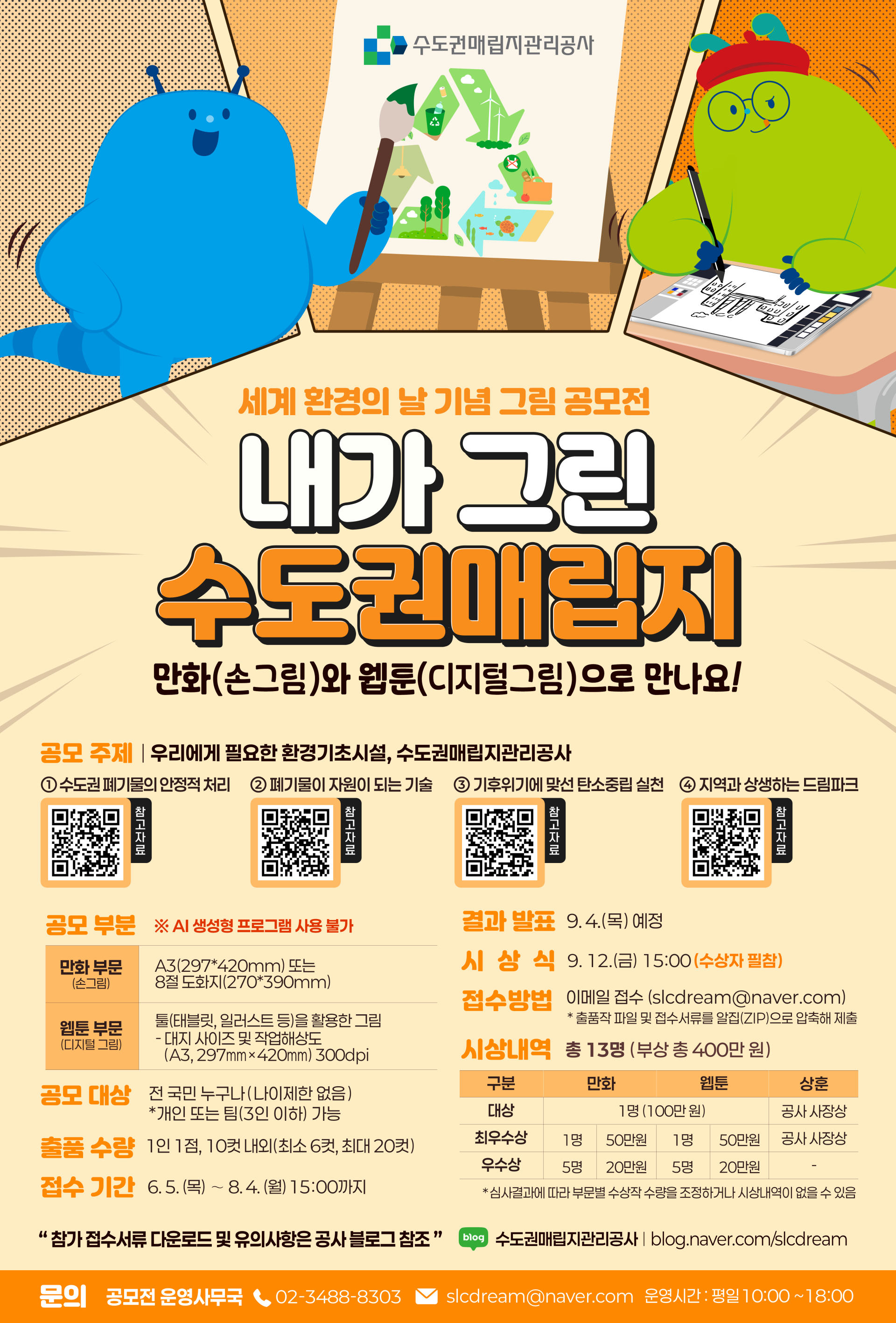 게시물 상세내용이 직접 수기로 타이핑하여 작성되고있어 내용에 오타 또는 오류가 있을 수 있으며, 주최사 사정으로 인하여 관련 정보 및 일정이 변경될 수 있으니 주최사(공식) 홈페이지 등을 통해 공모요강을 수시로 확인하시기 바랍니다.