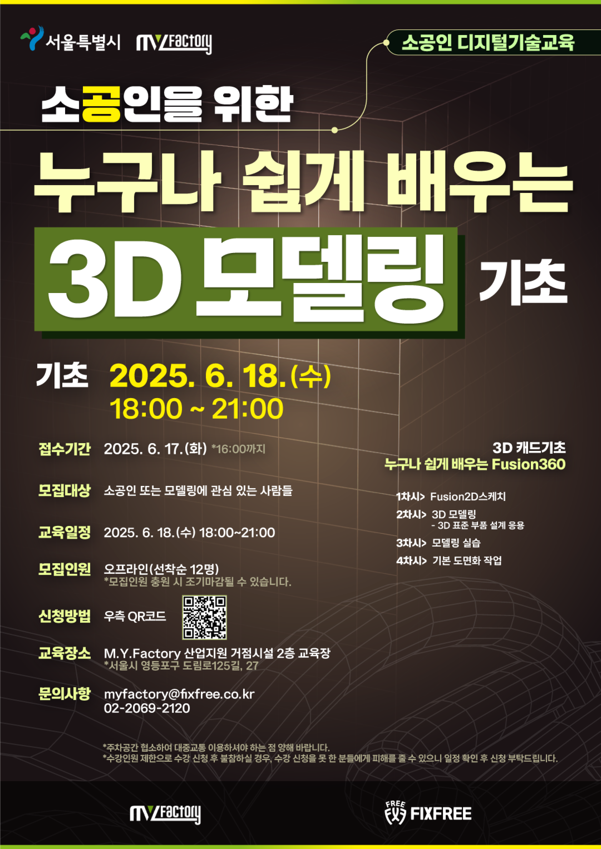 소공인 여러분들중에 모델링이나, 3D에 관심 있는 모든 분들의 적극적인 신청바랍니다.