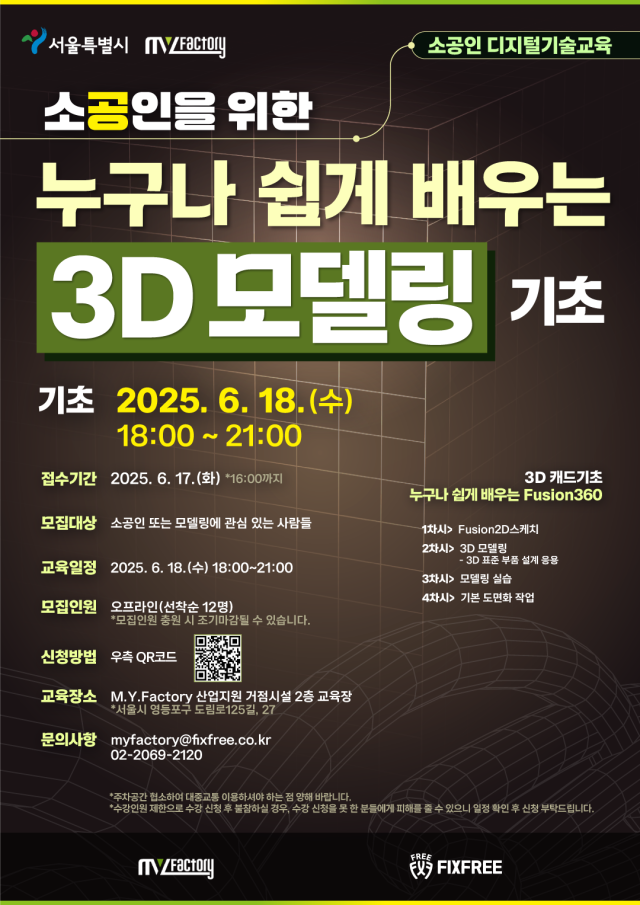 6월 소공인 디지털역량강화교육 "누구나 쉽게 배우는 3D모델링 기초"입니다.