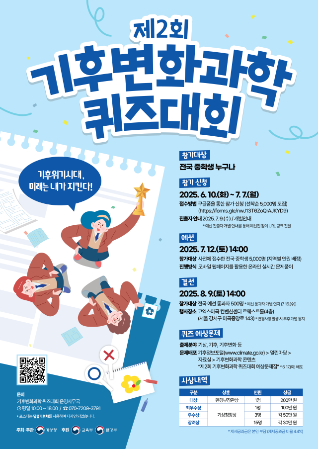 기후변화에 대한 과학적 이해와 기후위기에 관한 인식을 강화하고자 「제2회 기후변화과학 퀴즈대회」가 개최됩니다.