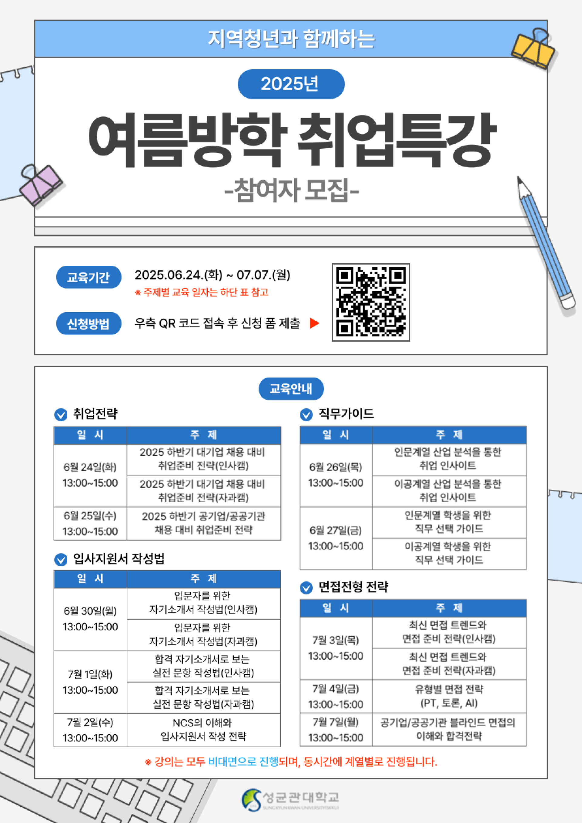 [성균관대학교] 「2025 여름방학 취업 특강 프로그램」 지역청년 참가자 모집(6/24~7/7)