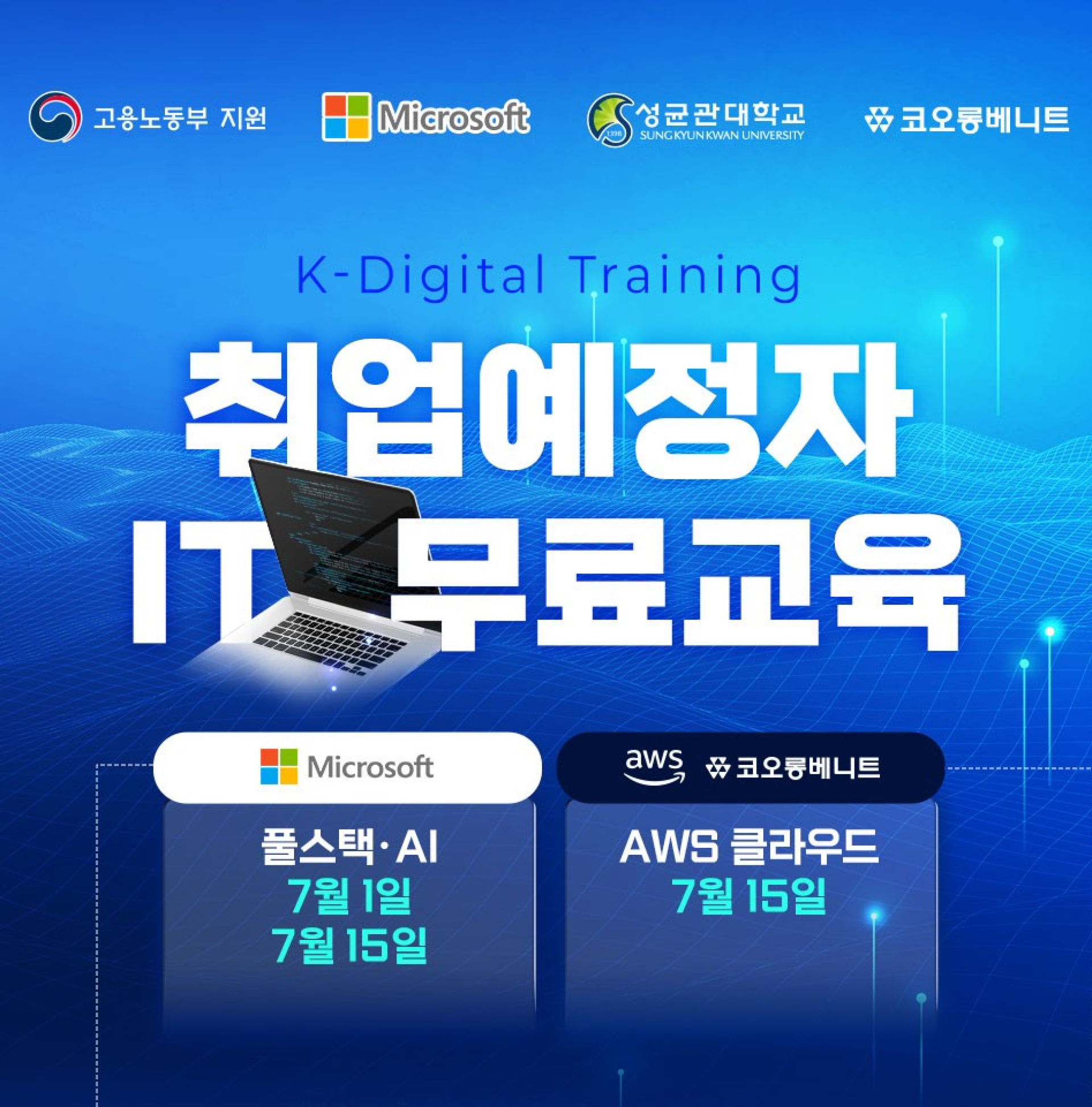 🌟K-디지털 트레이닝 국비지원 무료교육 IT학원 자바/클라우드 부트캠프 모집🌟