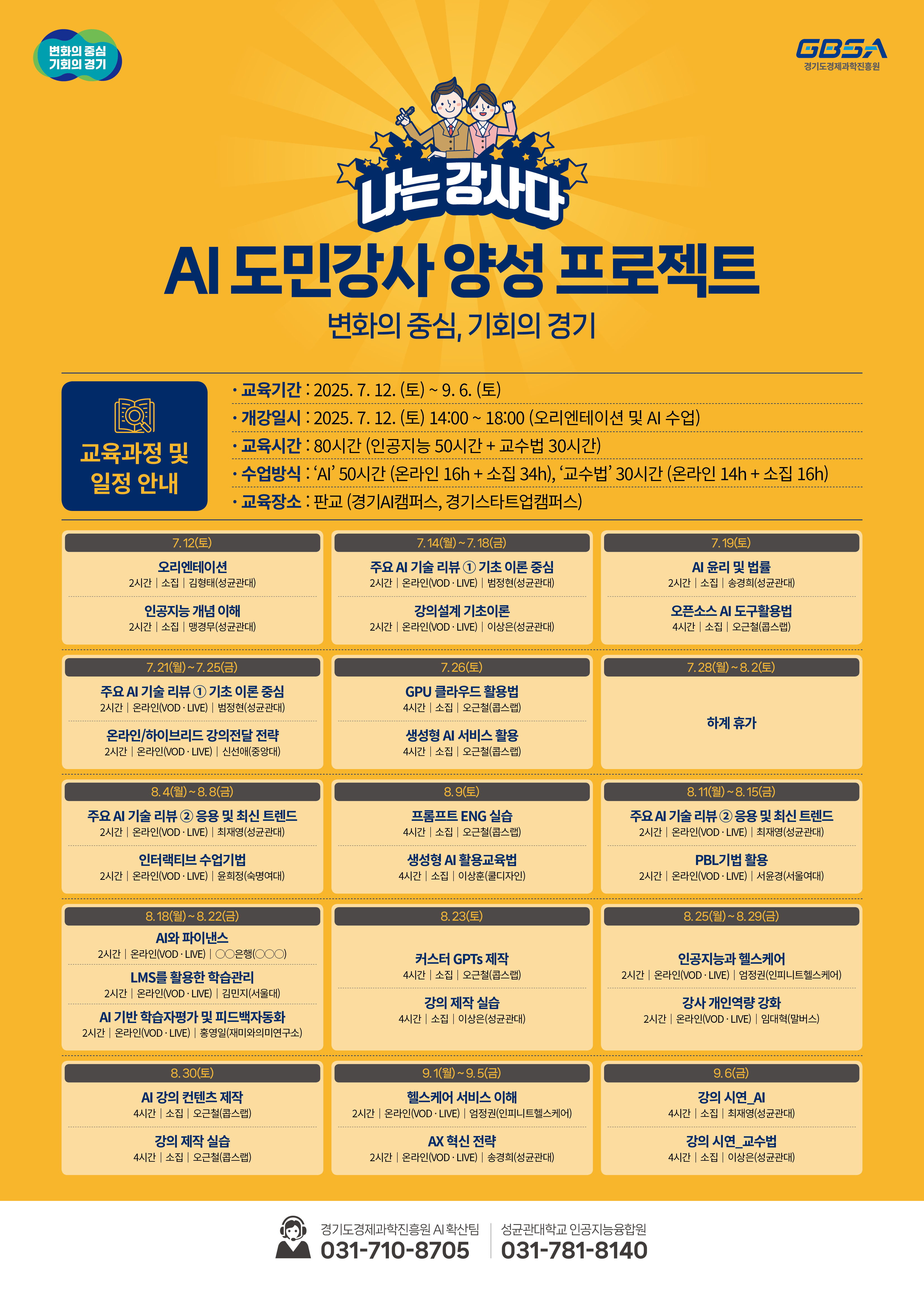 경기도경제과학진흥원과 성균관대학교가 준비한 "2025년 경기도 AI 도민강사 양성 프로젝트" 에 여러분을 초대합니다.