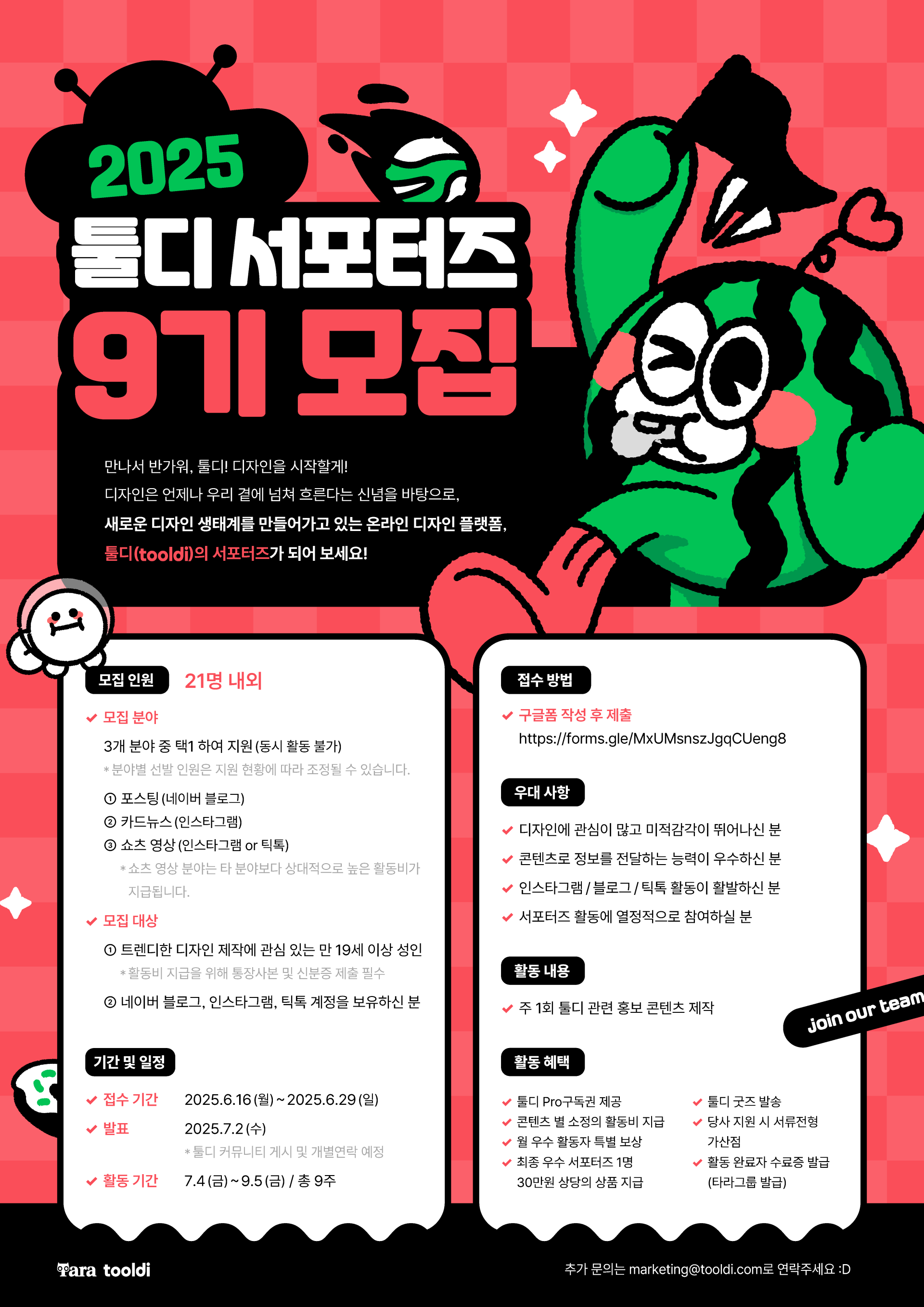 [타라티피에스] 툴디 서포터즈 9기 모집(~25/6/29)
