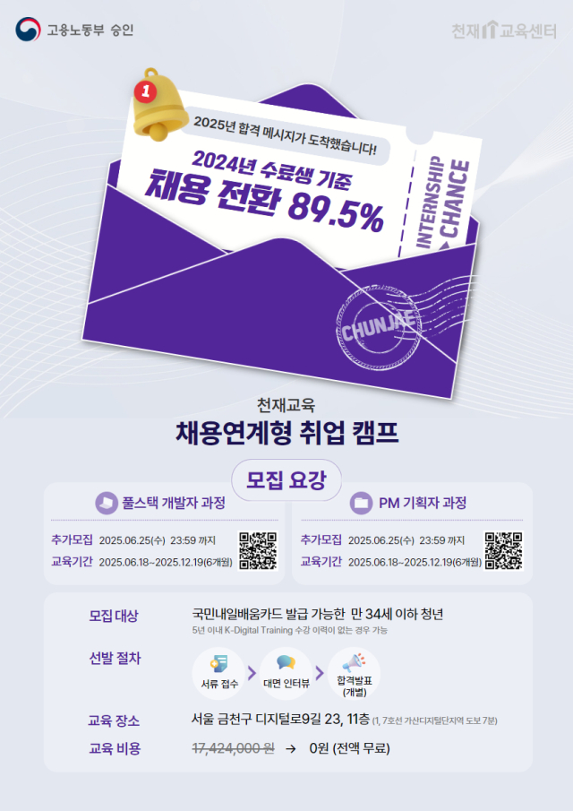 - 비용: 수강료 전액 무료(국비지원)