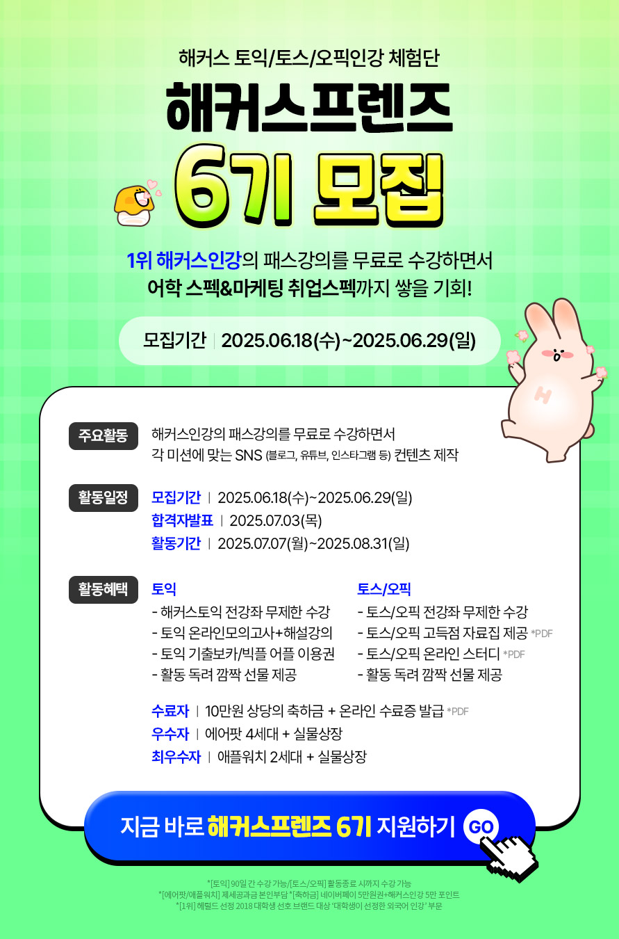 - 해커스 토익/토스/오픽인강 체험단 <해커스프렌즈> 6기를 모집합니다!