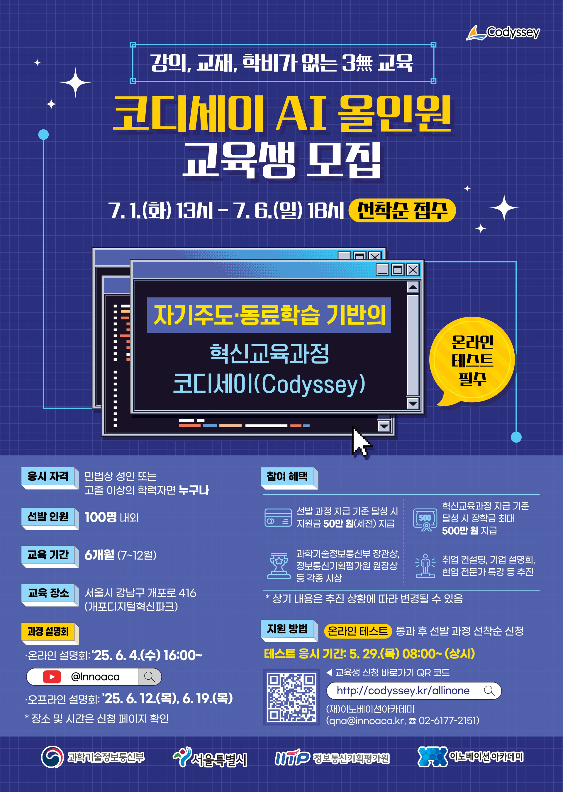 - 신청: 온라인 테스트 통과 후 선착순 접수