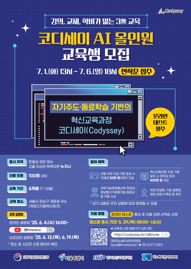 [이노베이션아카데미] 코디세이 AI 올인원 교육생 모집(온라인 테스트 5/29~)