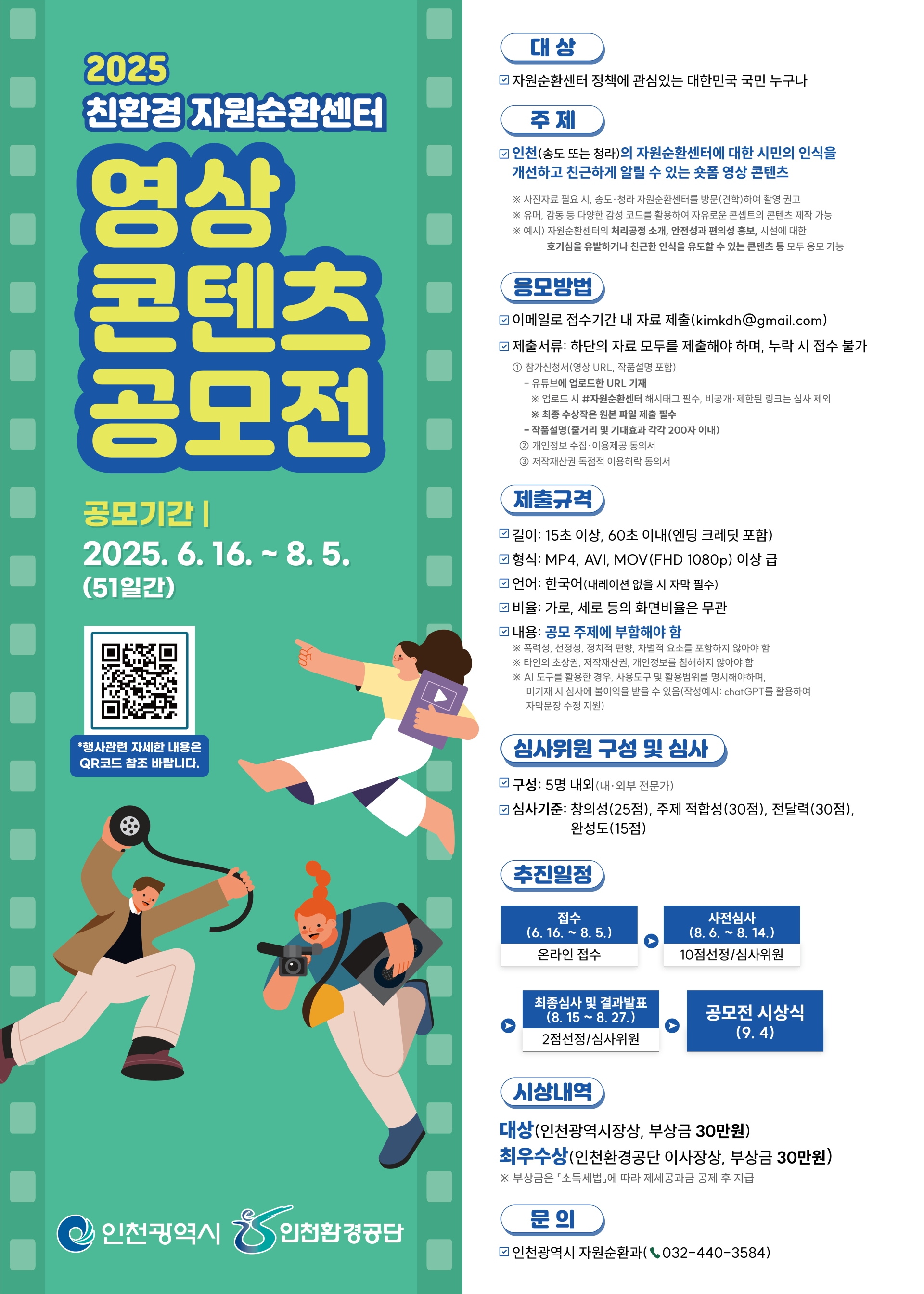- 주 제: 인천(송도 또는 청라)의 자원순환센터에 대한 시민의 인식을 개선하고, 친근하게 알릴 수 있는 숏폼 영상 콘텐츠