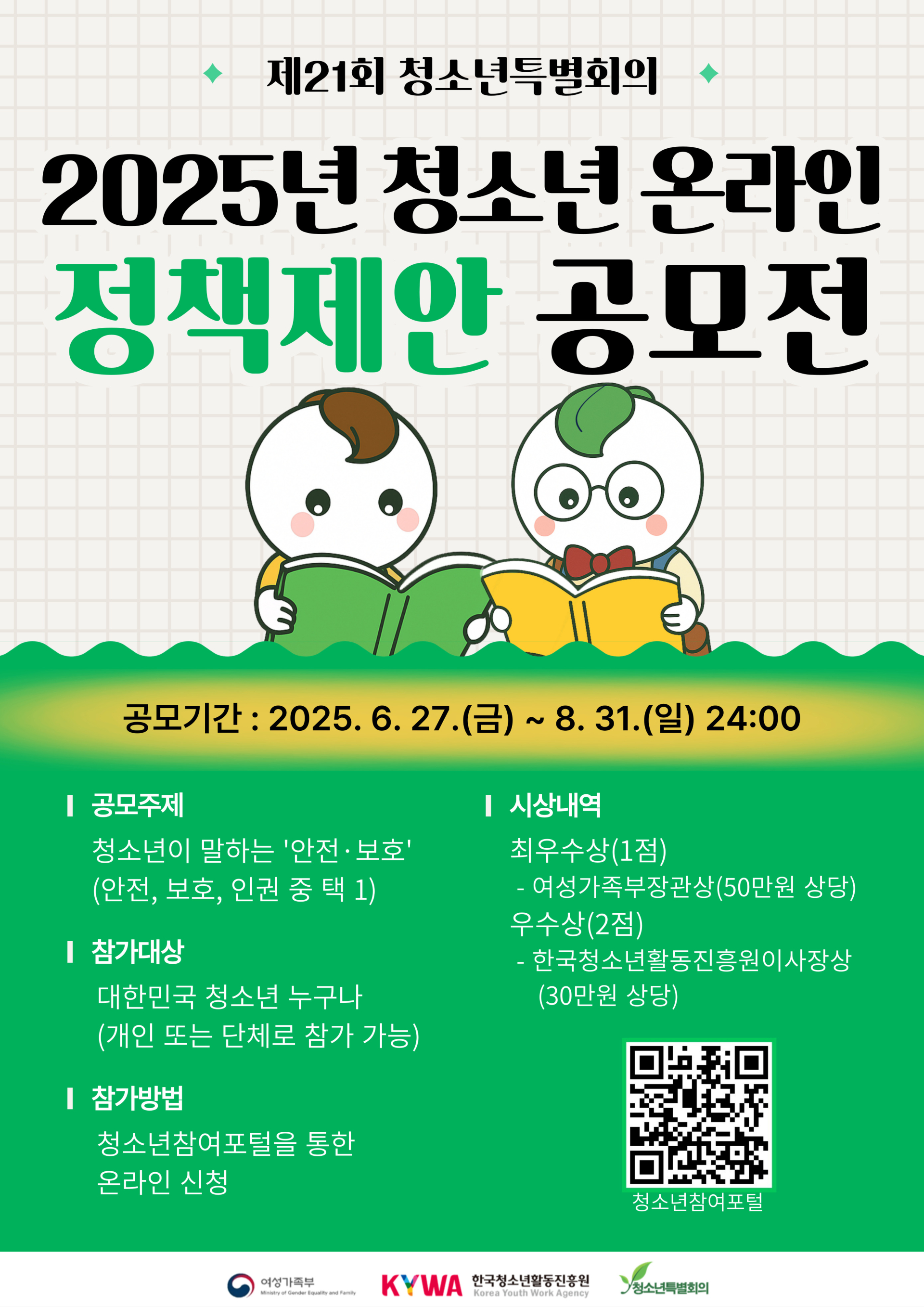| 시상내역 | 여성가족부 장관상 및 부상(50만원 상당, 1점), 한국청소년활동진흥원 이사장상 및 부상(30만원 상당, 2점) |