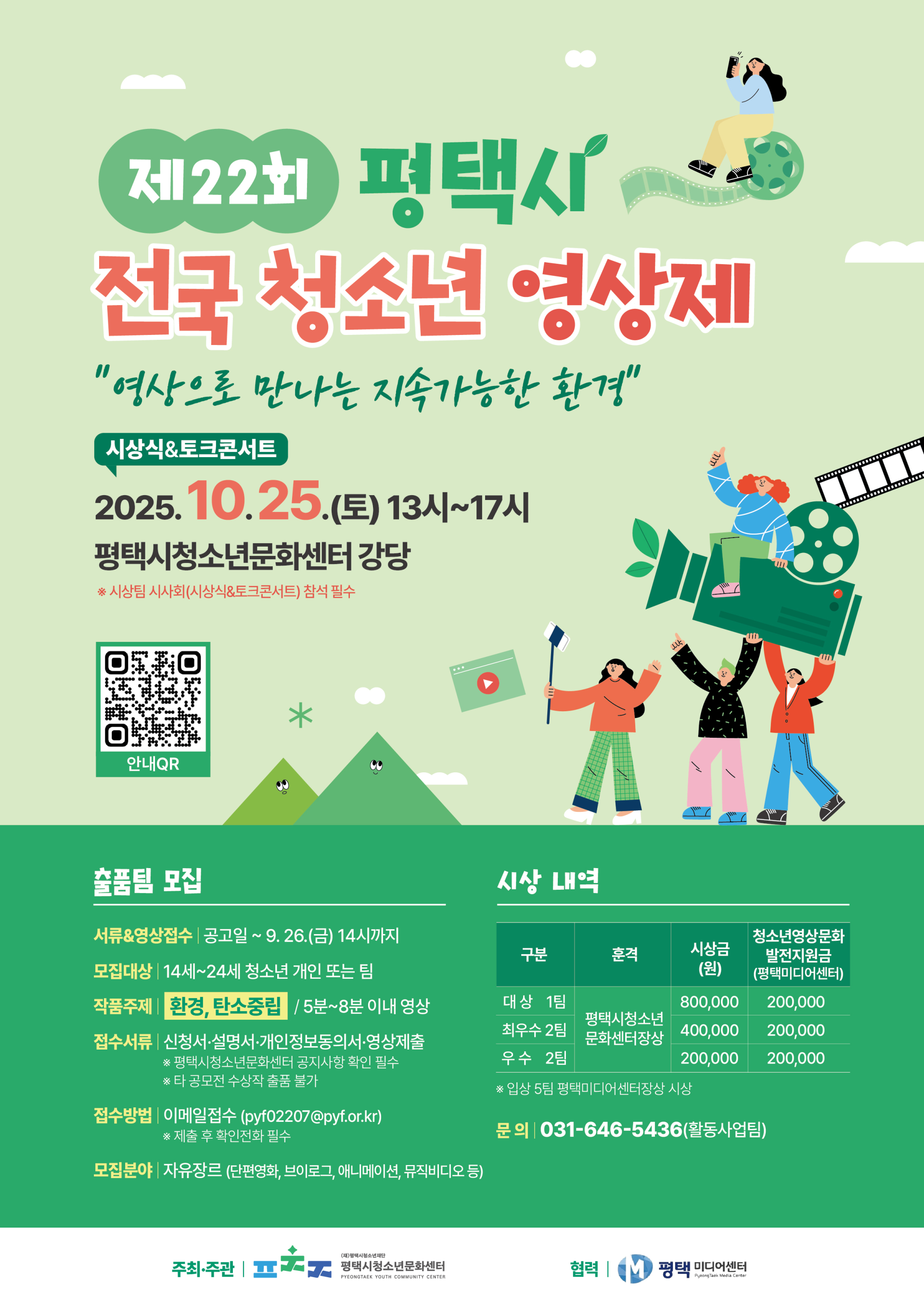 - 7.1.(화)~9.26.(금) 14시까지 / 시상식 25.10.25.(토) 13시, 평택시청소년문화센터