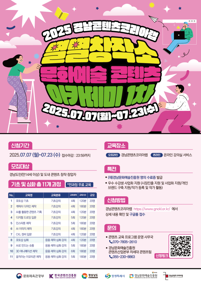 [경남콘텐츠코리아랩/별별창작소] 전액 무료! 2025년 별별창작소 문화예술 콘텐츠 아카데미 1차 교육생 모집