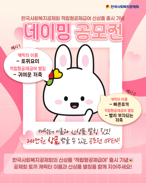 토끼 "캐릭터 이름"과 연계하여 "신상품(적립형공제급여)" 별칭을 지어주세요. 선정된 분께 상금을 드립니다!