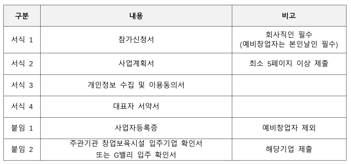 - 예비창업자 또는 법인설립 10년 이내 스타트업 (공고일 기준)