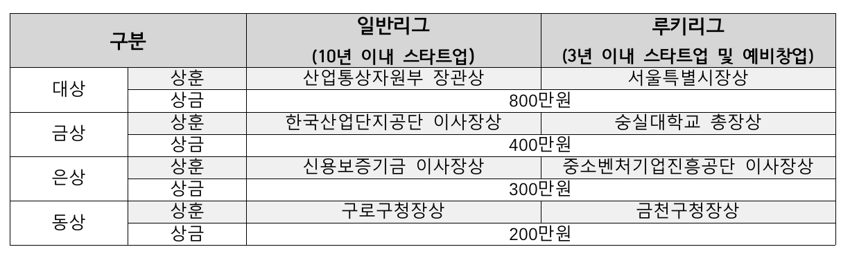 | 시상내역 | 최종입상 8개사 대상 총 3천4백만원 규모의 상금 및 특전* 제공 |