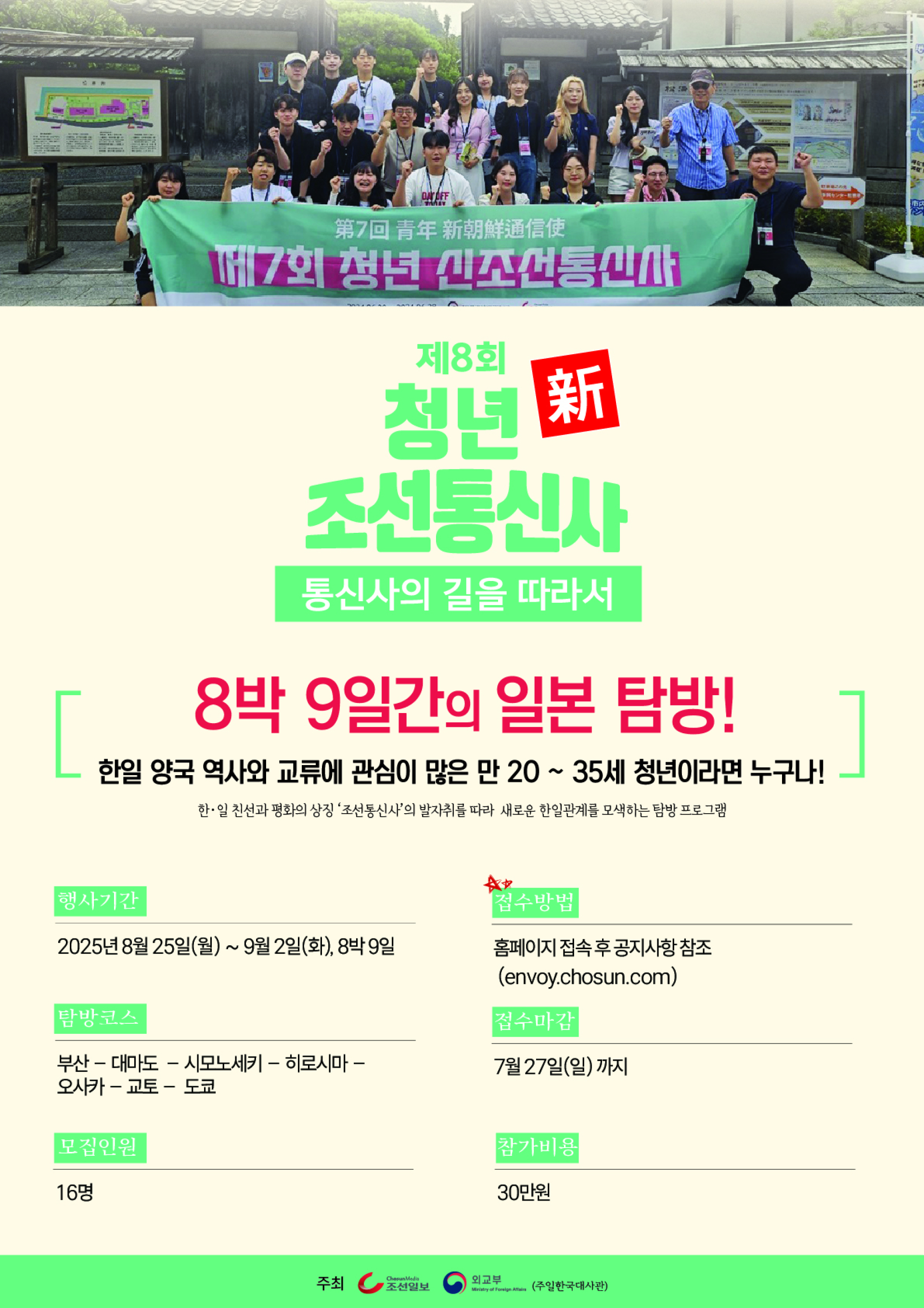 - 조선일보사와 주일본 대한민국대사관이 마련하는 '제8회 청년 新조선통신사 - 통신사의 길을 따라서'