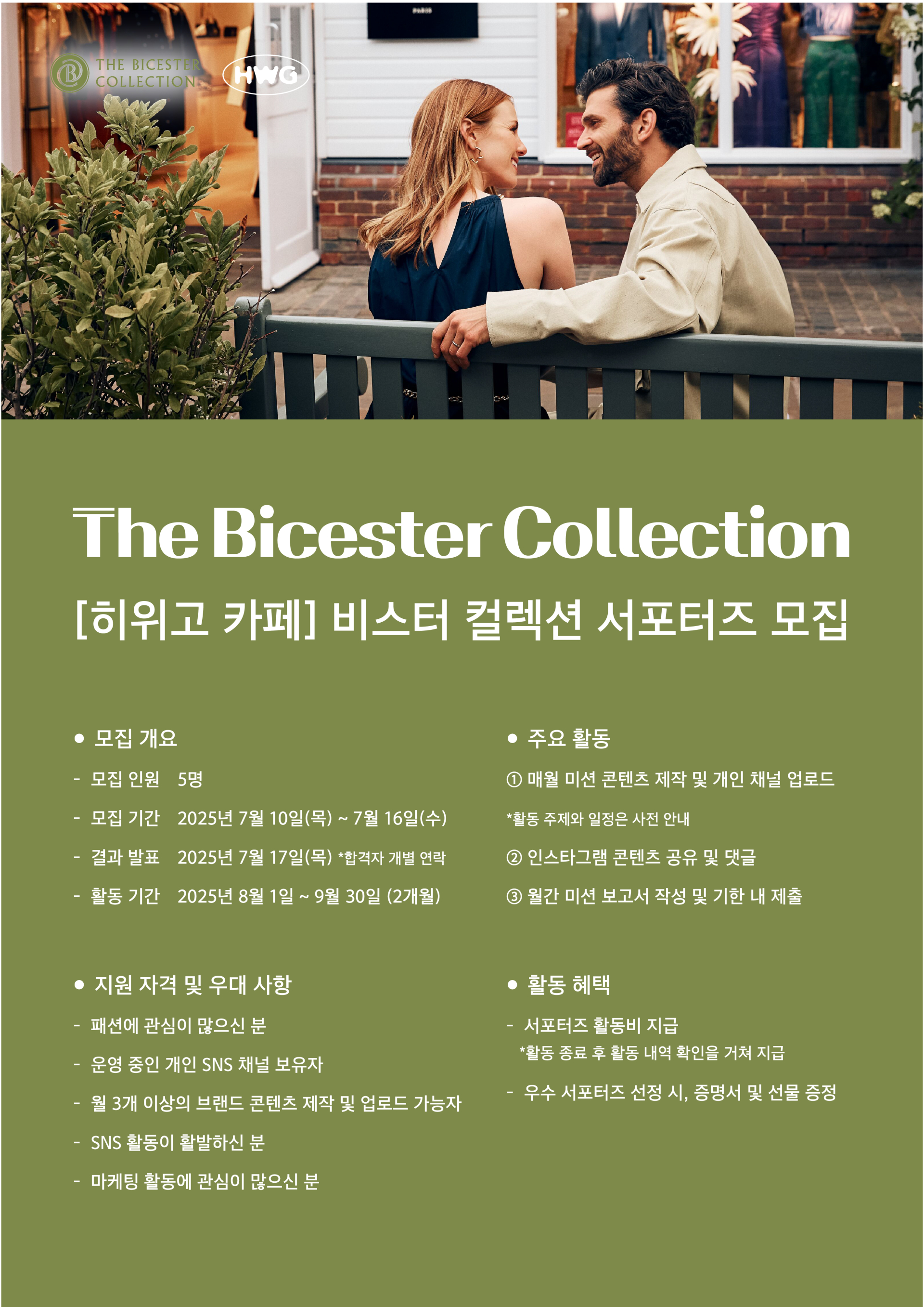 - 유럽 최대 명품 아울렛, 비스터 컬렉션(Bicester Collection)의 서포터즈를 모집합니다.
