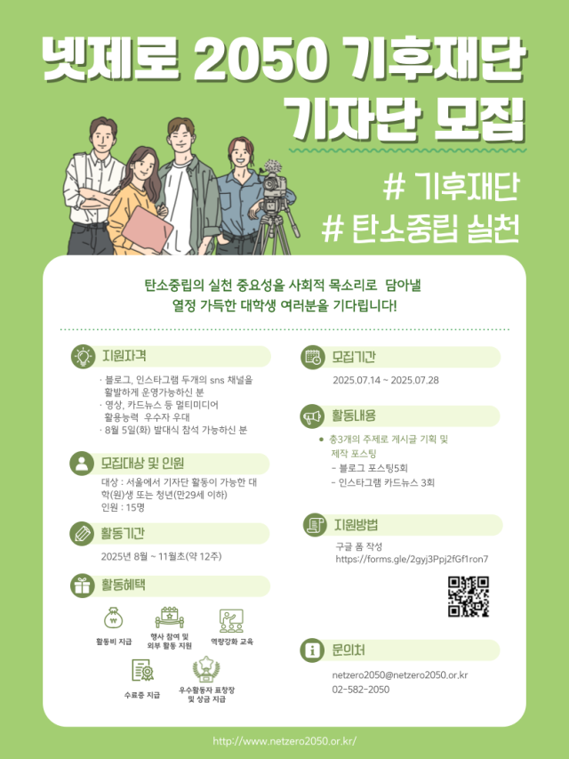 | 혜택 | 활동비 지급, 행사참여 및 외부활동 지원, 역량강화 교육, 수료증 지급, 우수활동자 표창장 및 상금 지급 |