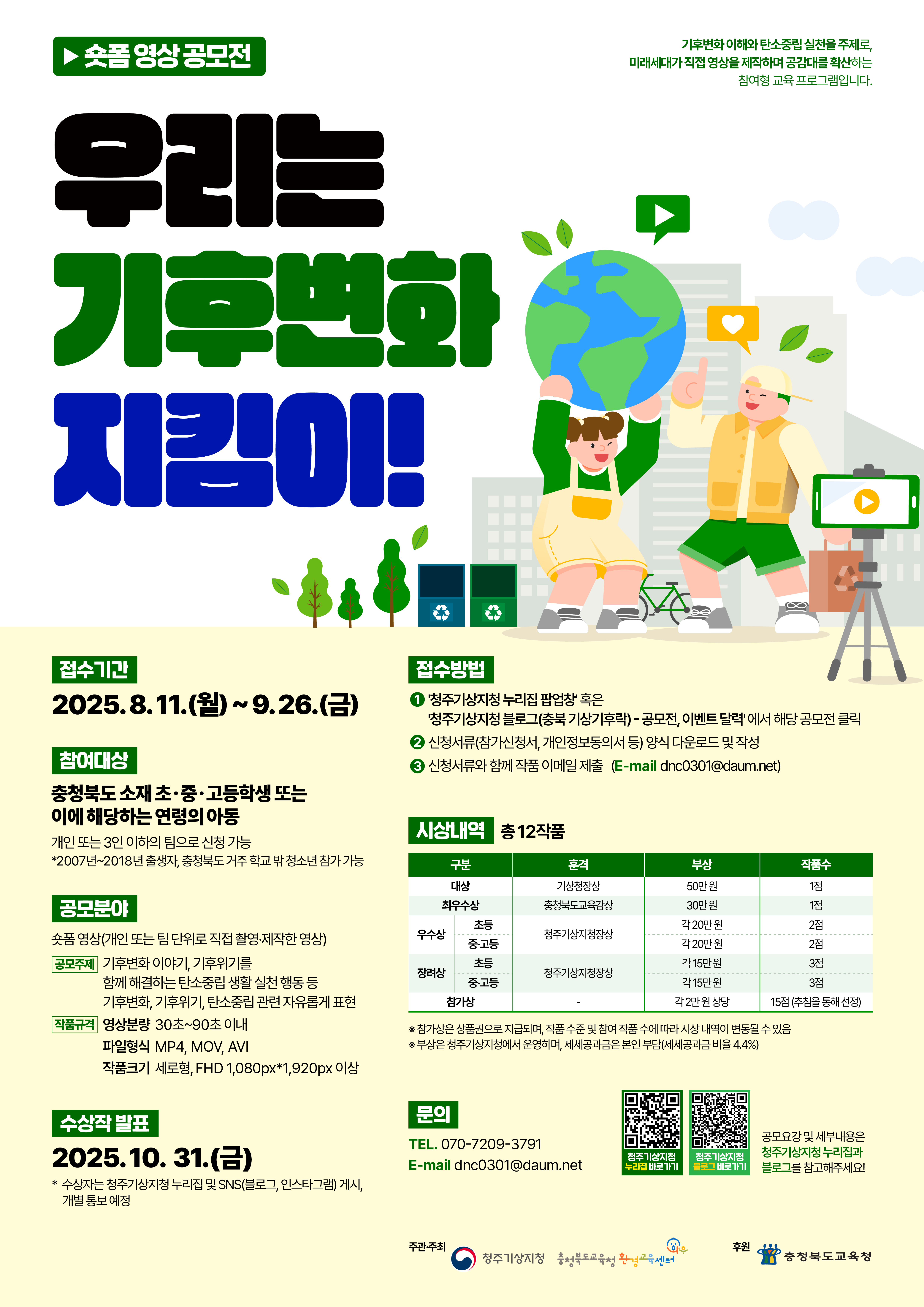 2025 우리는 기후변화 지킴이 숏폼 영상 공모전~(9.26.금)