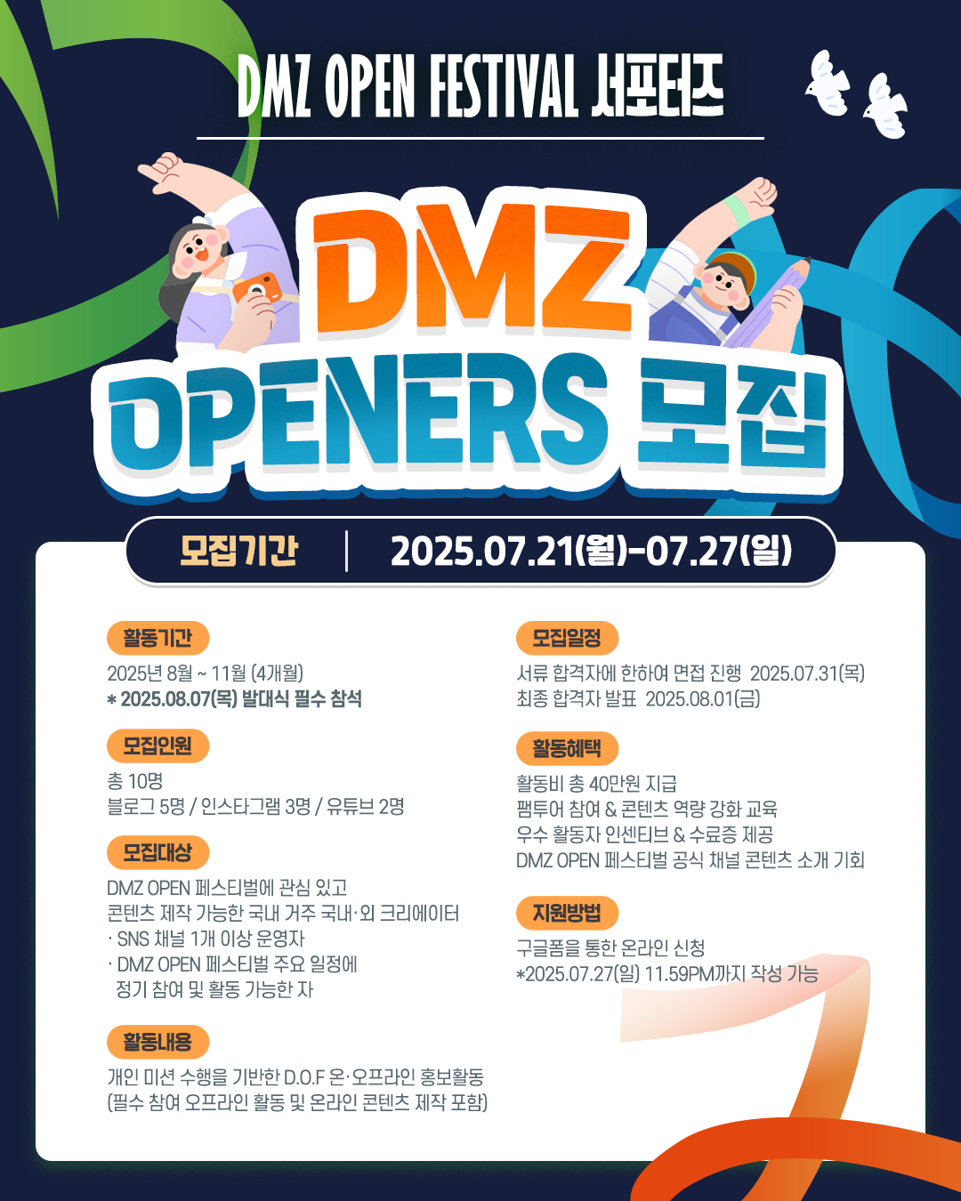 DMZ OPEN 페스티벌 공식 서포터즈‘DMZ OPENERS’를 찾습니다!