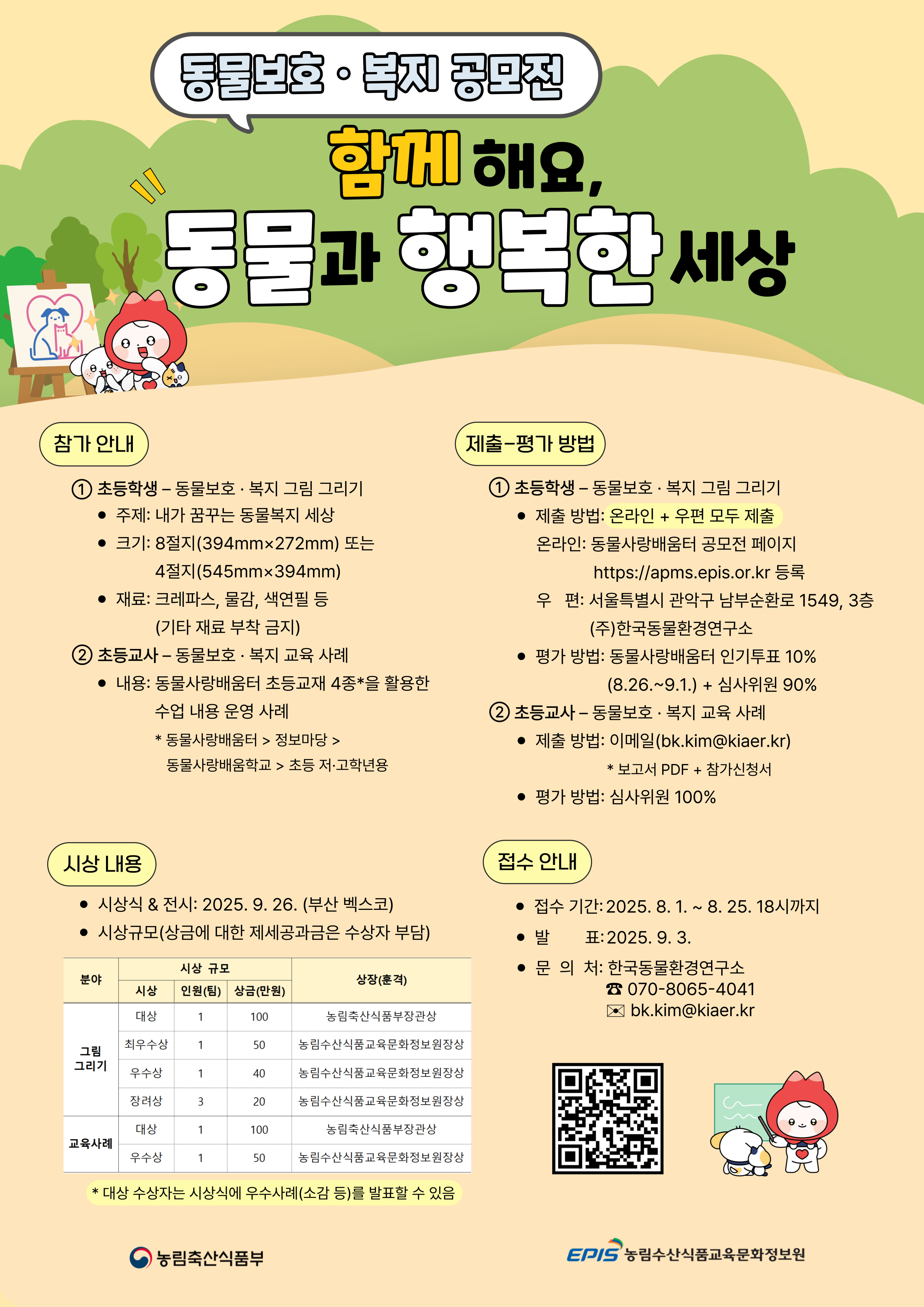 - 초등학교 교사 공모 주제: 동물과 사람이 함께 살아가는 따뜻한 세상 만들기