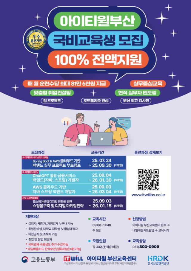 시상내역 전액 국비 무료, 매월 훈련수당 지급