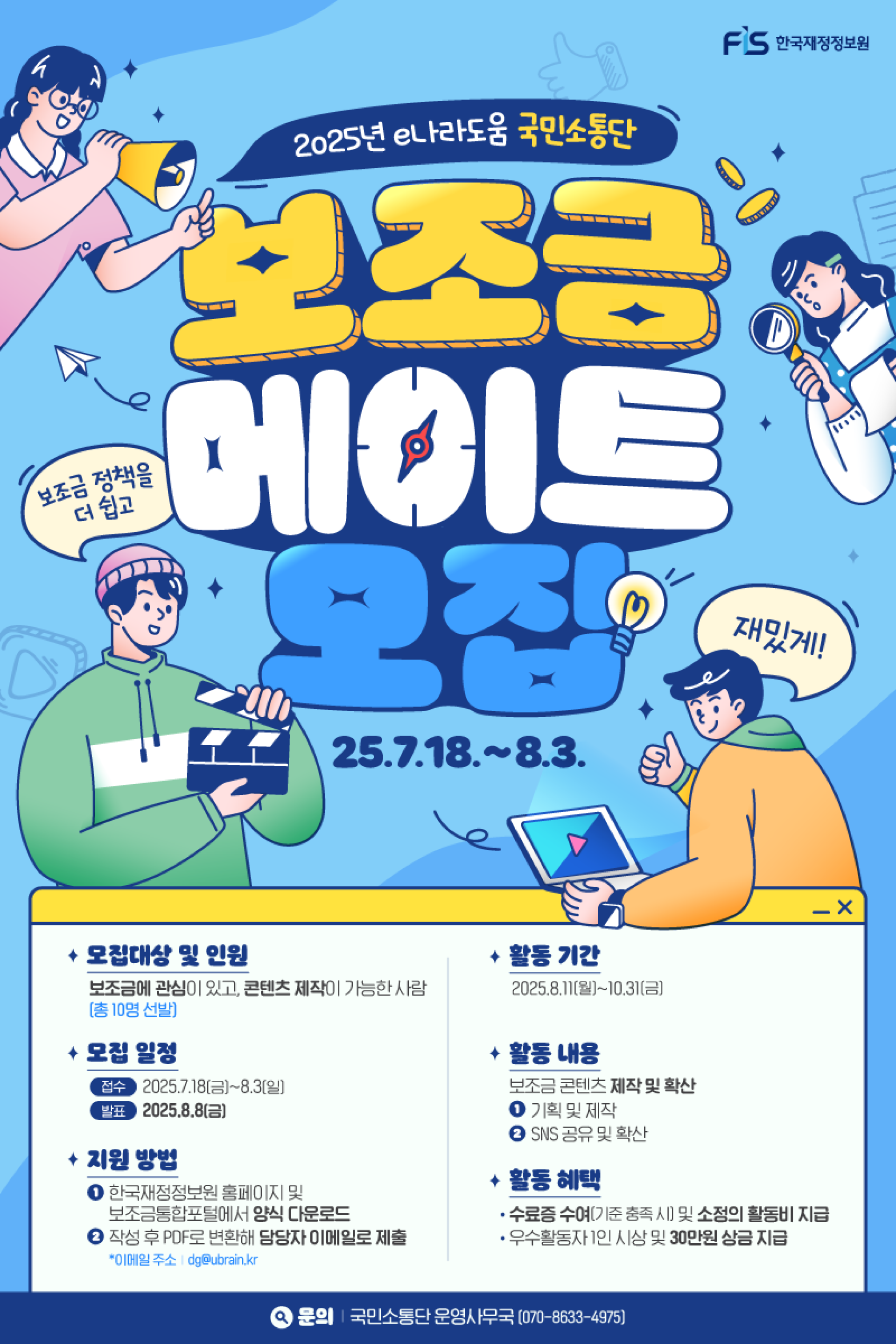 2025년 e나라도움 국민소통단 '보조금 메이트'를 모집합니다!(~8.3.)