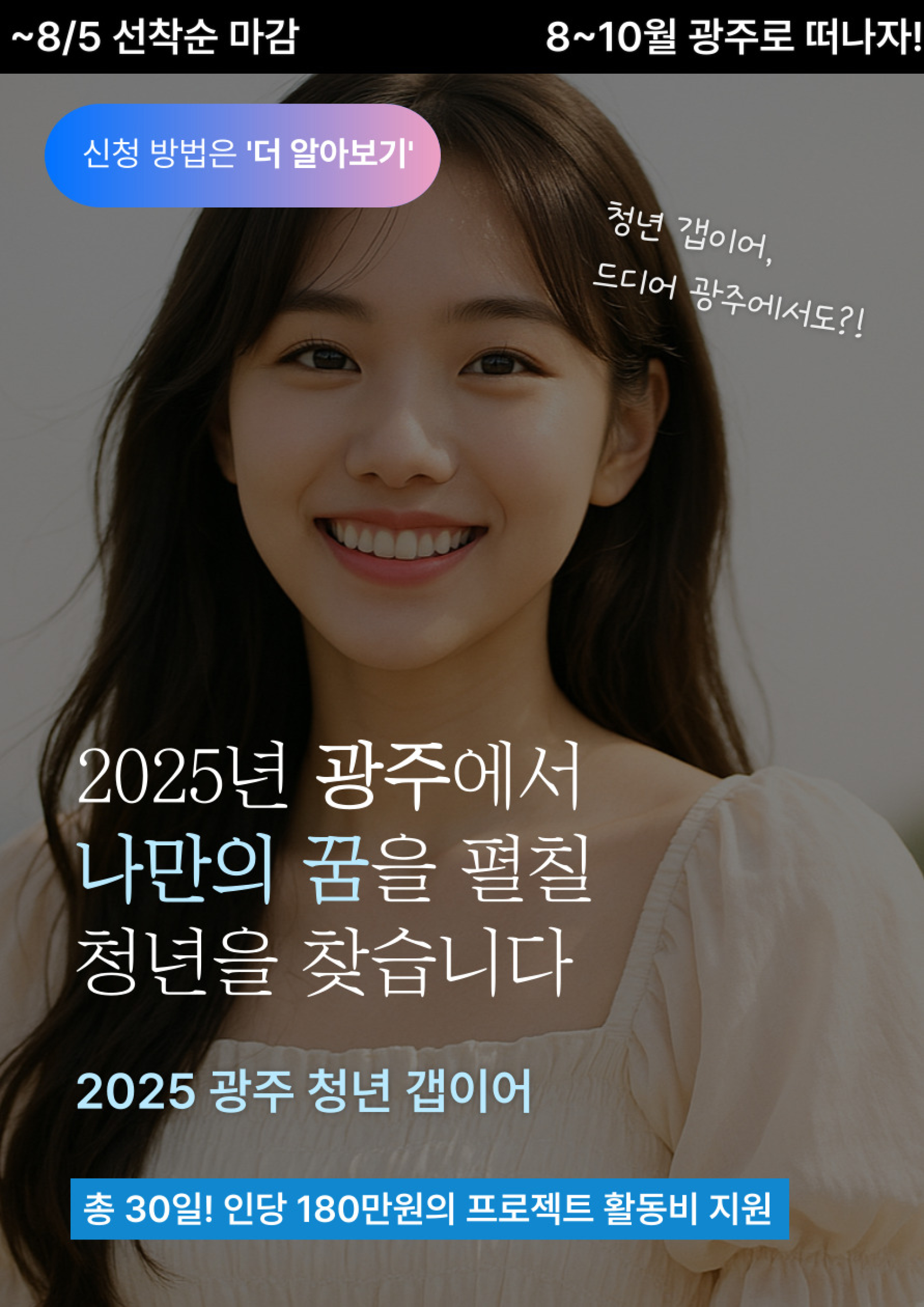[180만 지원금 받고 광주로 떠나자!] 2025 광주청년갭이어 참여자 모집 (~8/4 16:00)