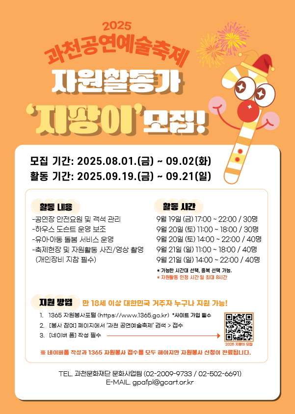 <2025 과천공연예술축제> 자원활동가 지팡이(G-PANG E) 모집