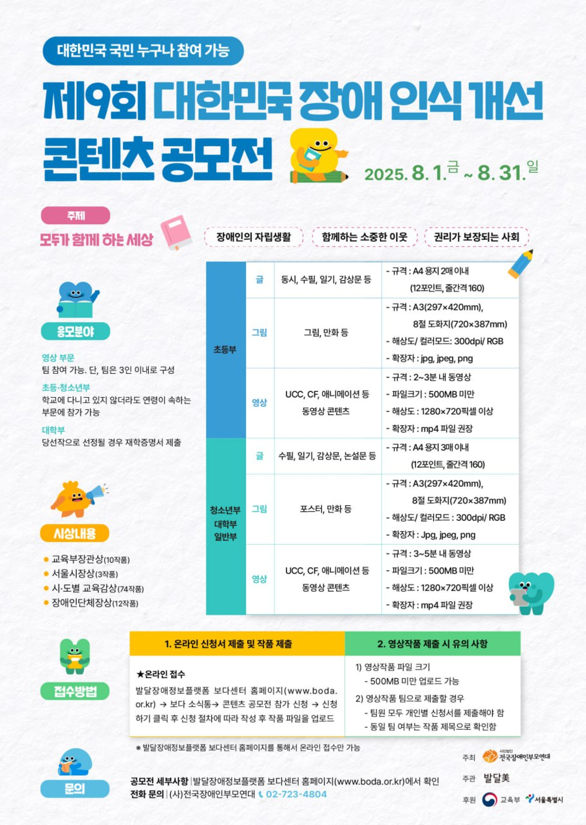 * 수상작은 개별 통보와 함께 전국장애인부모연대, 발달장애정보플랫폼 보다센터 홈페이지에 게재