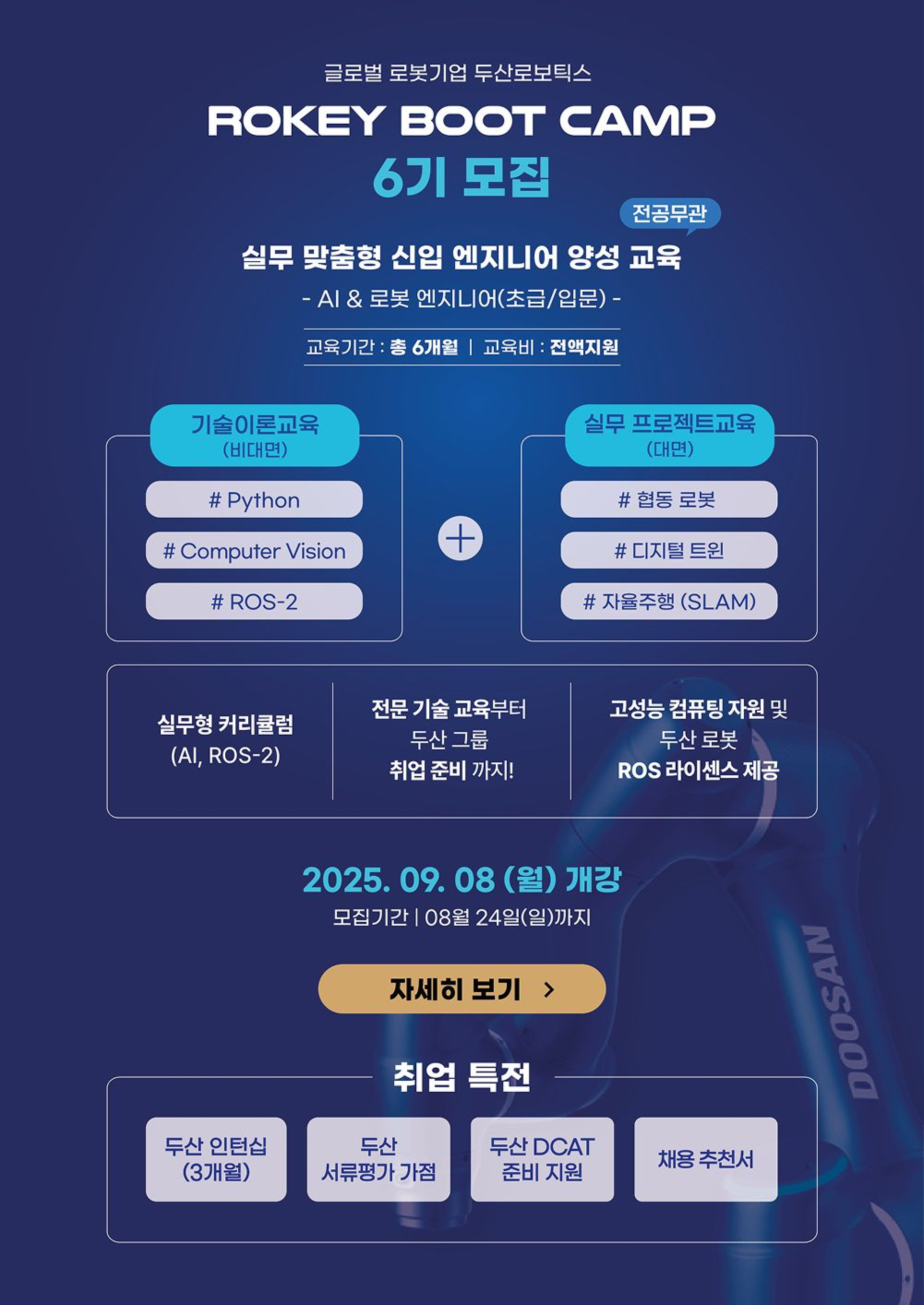 [두산로보틱스] 로키부트캠프 AI·로봇 엔지니어 양성과정 6기 모집