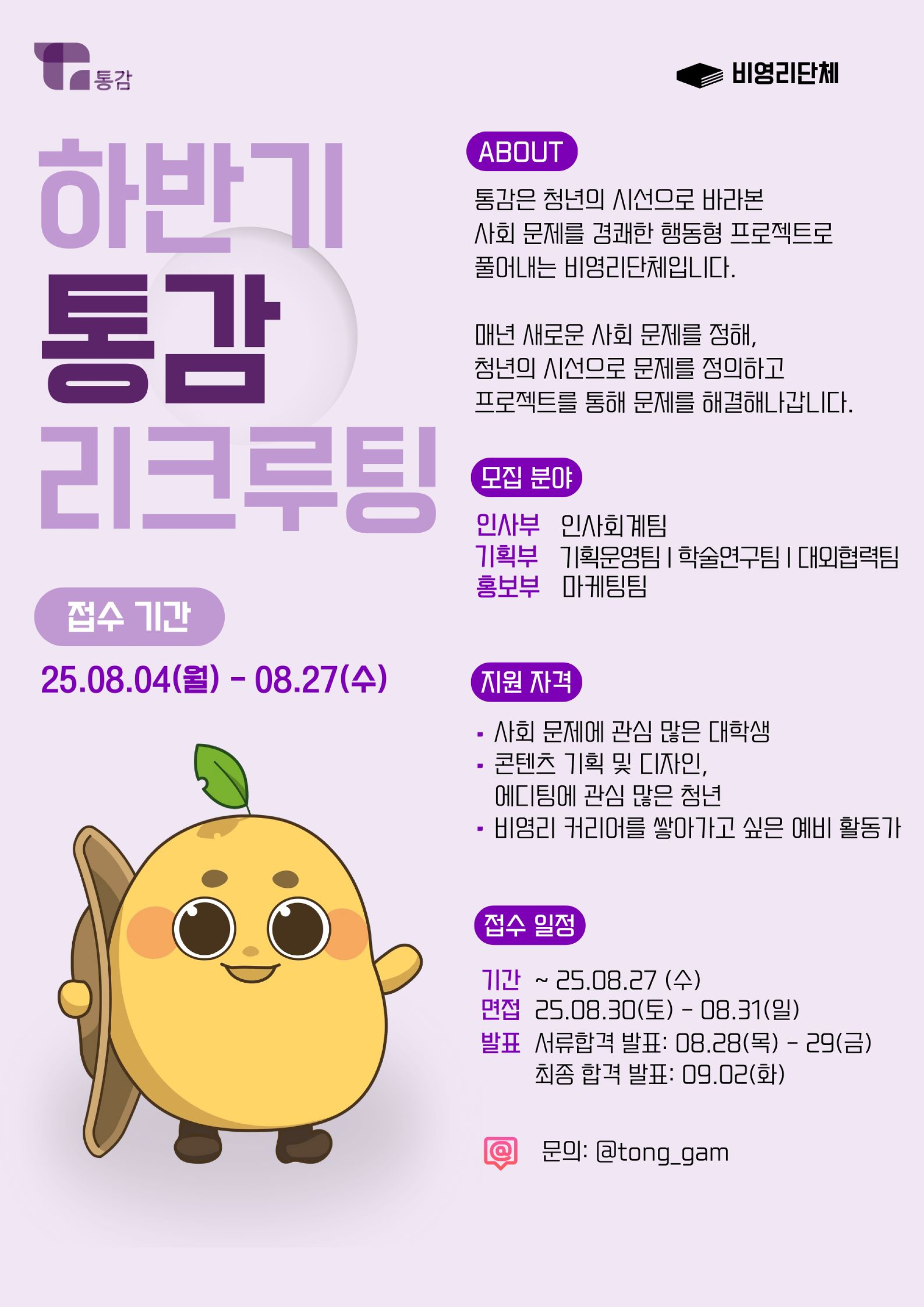 [서울시 청년 비영리단체]통감의 새로운 팀원을 모집합니다.