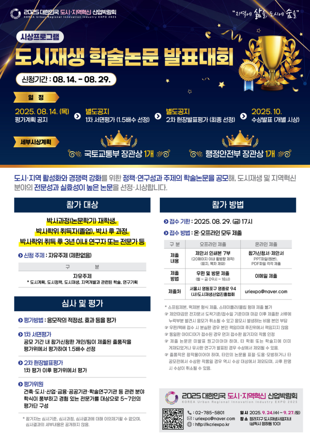 도시재생 및 지역혁신 분야의 전문성과 실효성이 높은 논문을 선정·시상합니다.