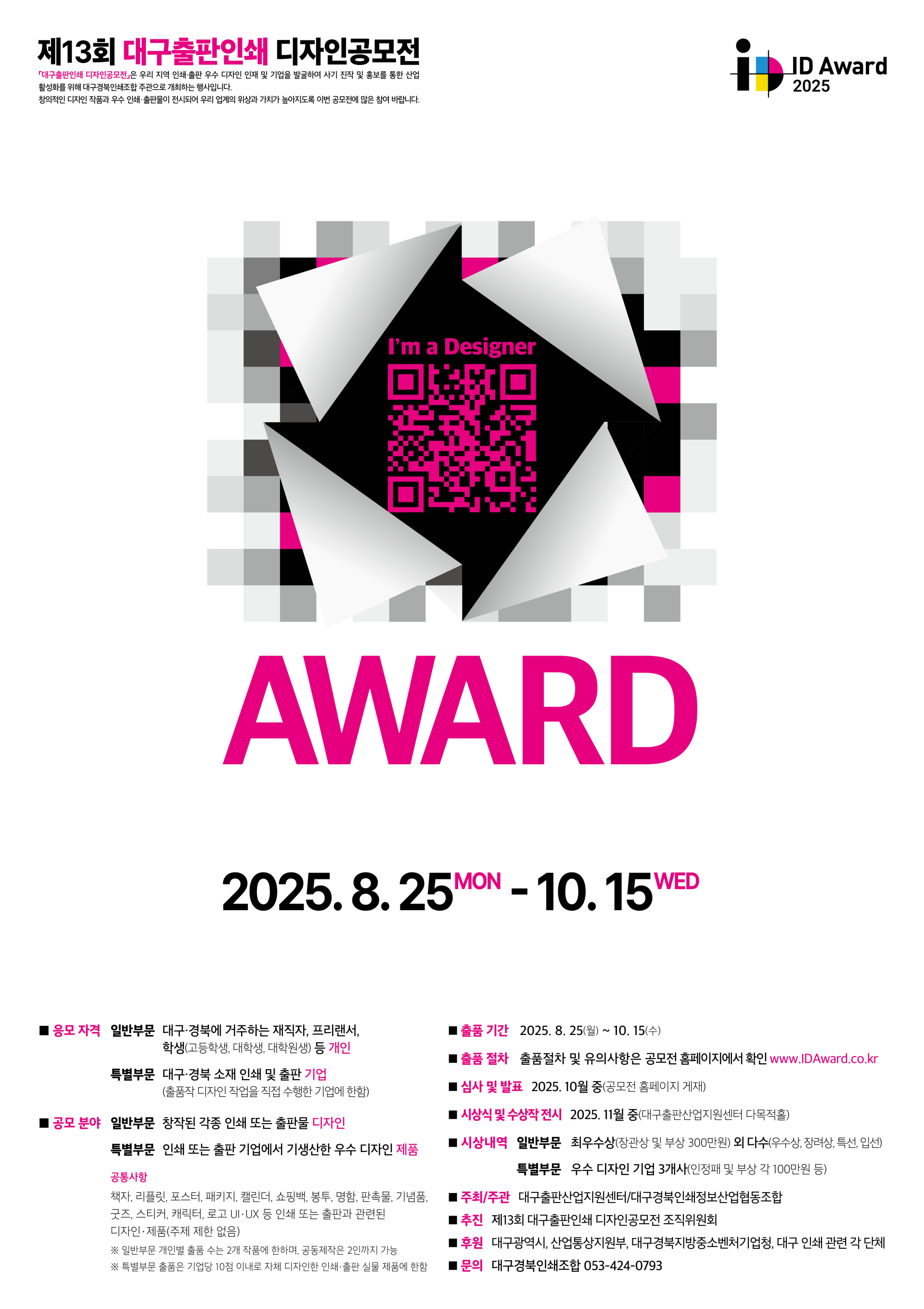 - 추 진 : 제13회 대구출판인쇄 디자인공모전 조직위원회