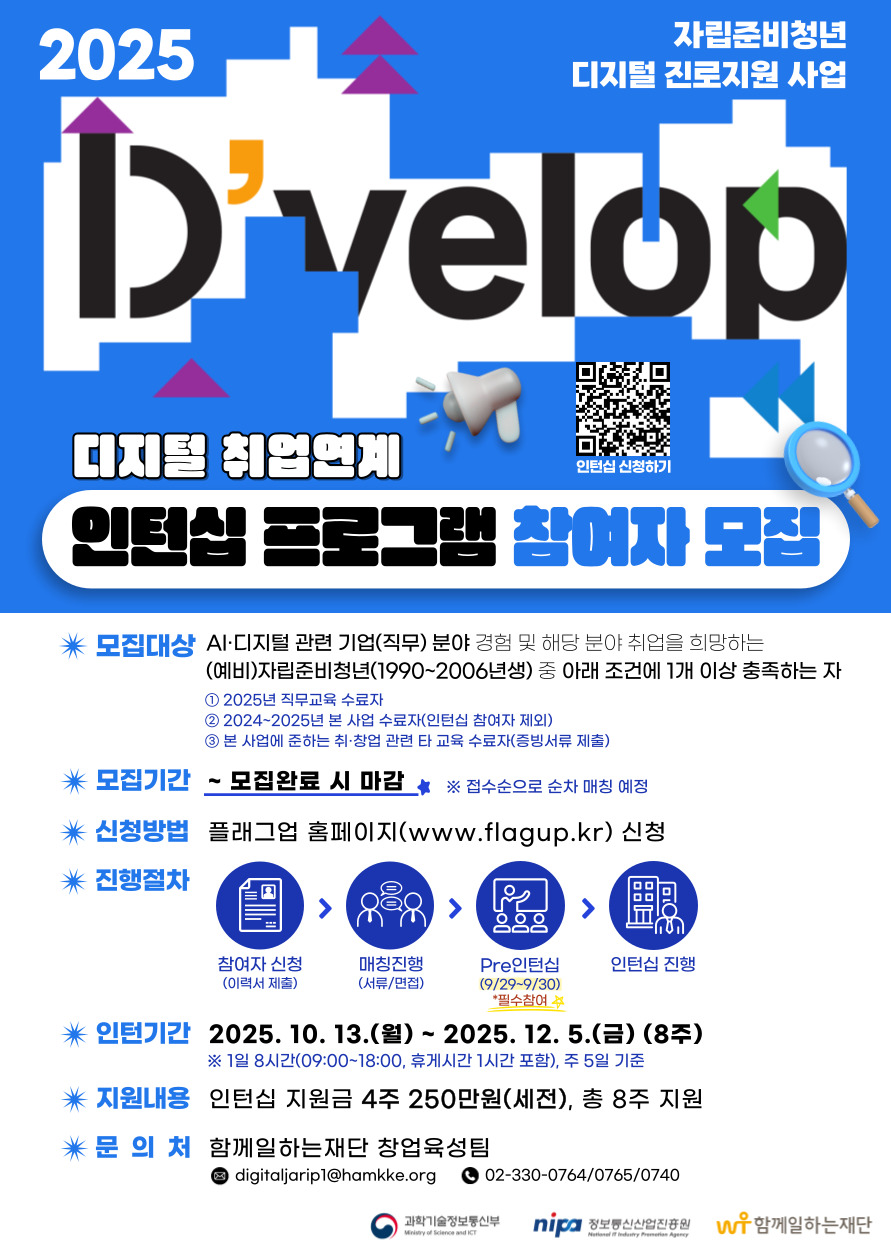 - 사전 필수 교육(Pre인턴십) : 2025. 9. 29.(월) ~ 2025. 9. 30.(화) *오프라인