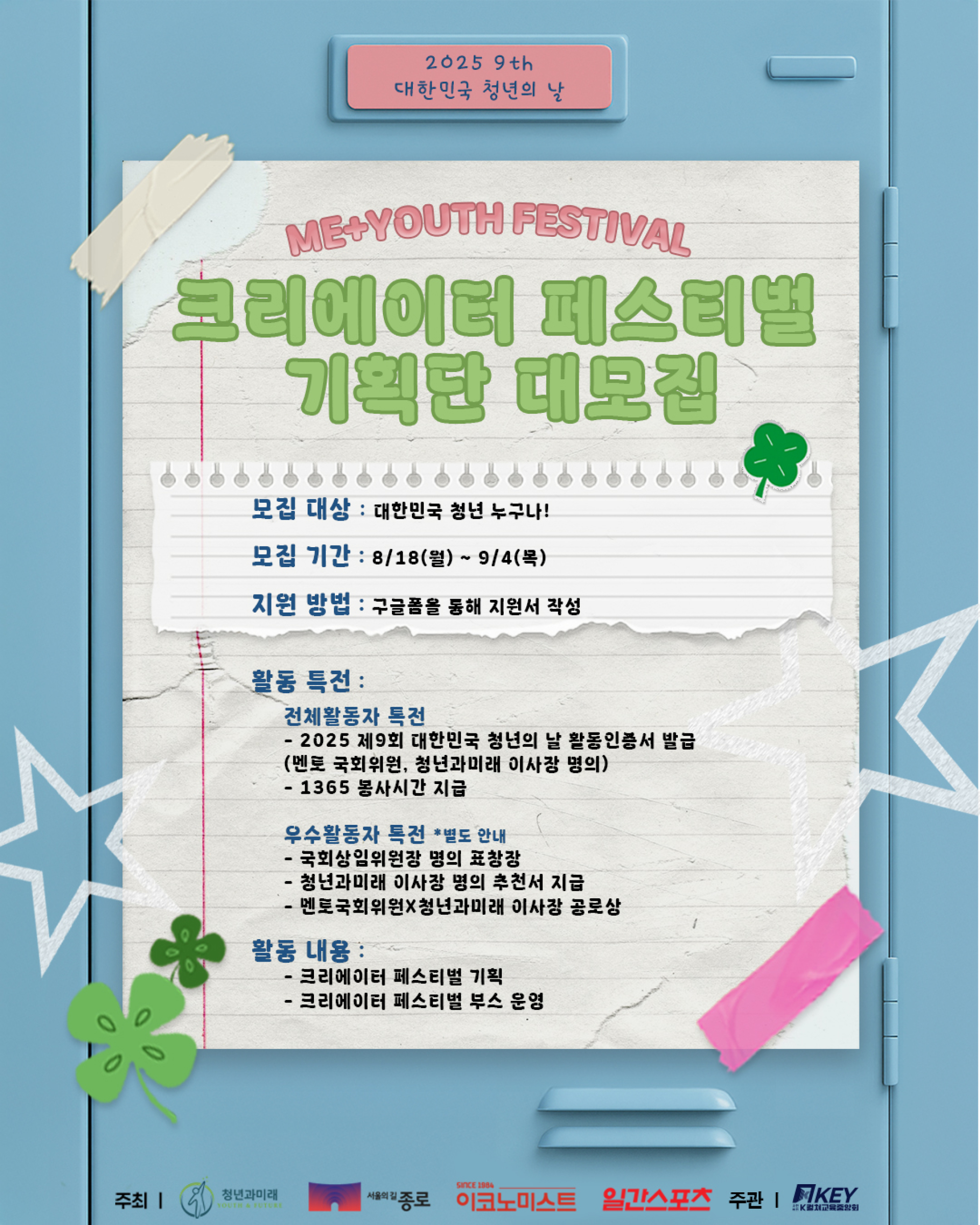 <2025 제9회 대한민국 청년의날> 크리에이터 페스티벌 기획단 대모집!