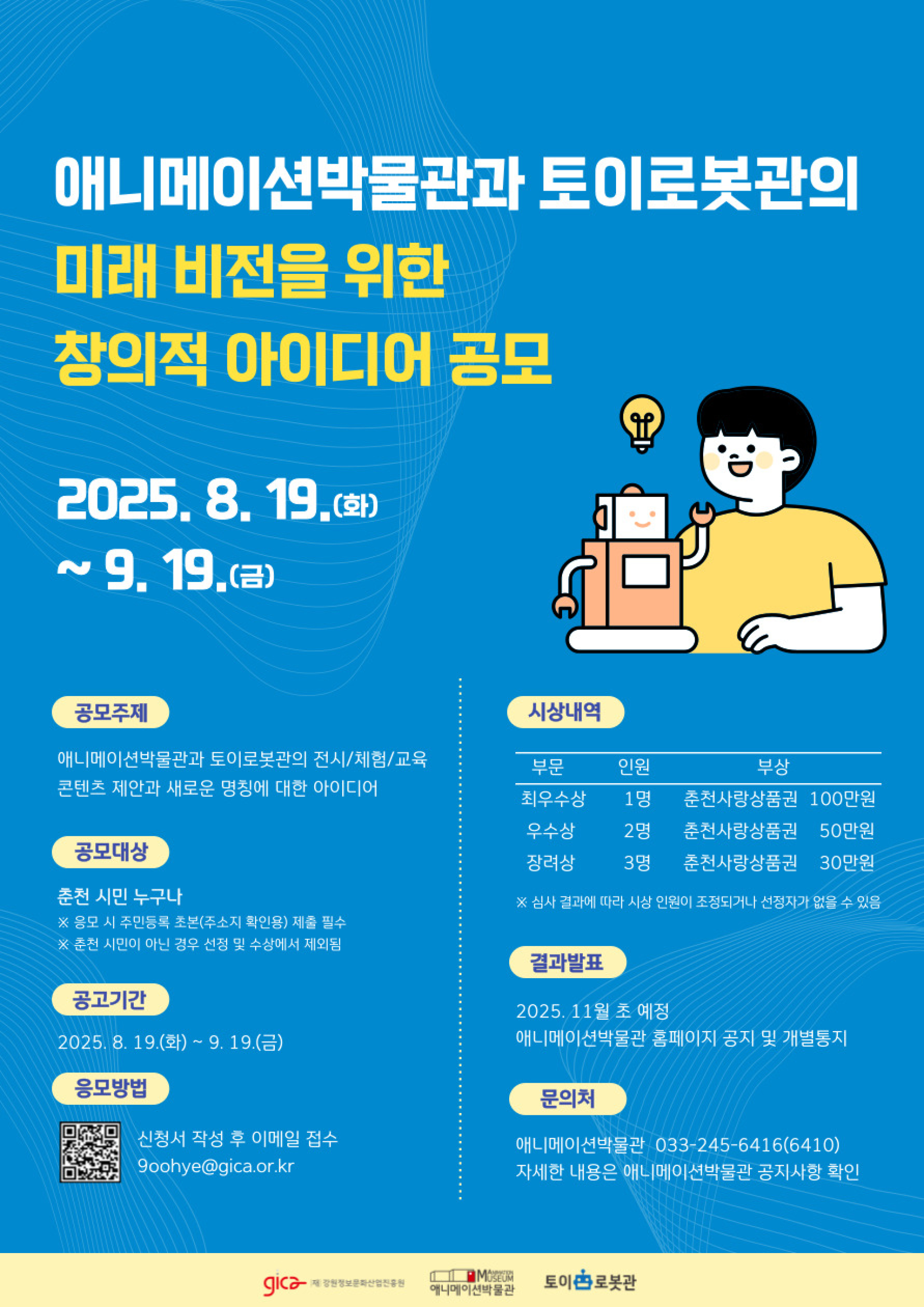 애니메이션박물관과 토이로봇관의 미래 비전을 위한 창의적 아이디어 공모