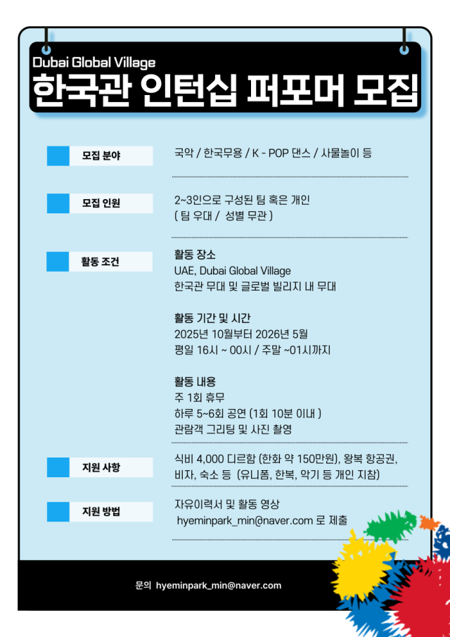 [3인 추가모집] 두바이 글로벌빌리지 한국관 퍼포머 모집